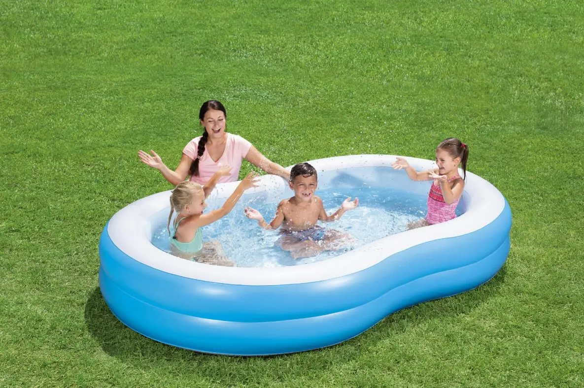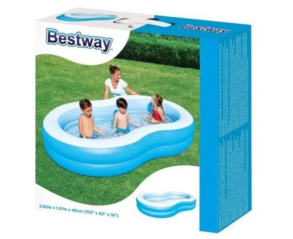 Czy Twoje dzieci pragną zabawy i przygody w gorący letni dzień? W takim razie sprezentuj im nadmuchiwany basen Bestway 262x157x46! Gładki materiał PVC sprawia, że jest on miękki, a jednocześnie wytrzymały; ma kształt elipsy dla maksymalnego komfortu. Dwa nadmuchiwane pierścienie zapewniają najwyższą wytrzymałość basenu, więc możesz mieć pewność, że Twoje dzieci bawią się w bezpieczny sposób. Dzięki pojemności 544 litrów w tym jedynym w swoim rodzaju basenie Twoje dzieci na pewno będą się świetnie bawić przez wiele godzin! W zestawie znajduje się łatka naprawcza. Nie czekaj więc - kup dmuchany basen Bestway już dziś i zapewnij swoim dzieciom niezapomniane lato!
