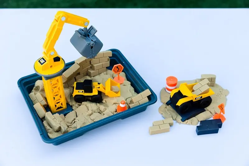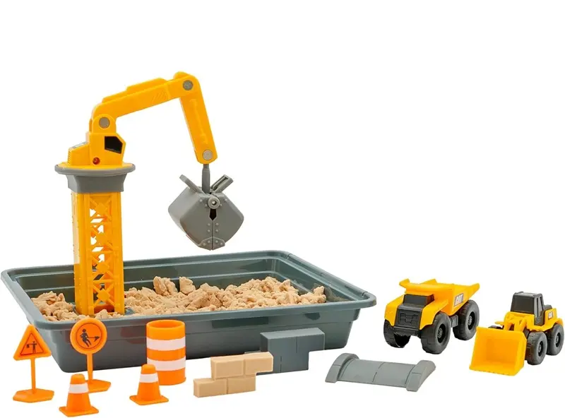 To komplet, który pozwala przenieść atmosferę prawdziwego placu budowy prosto do dziecięcego pokoju. W zestawie znajdują się charakterystyczne żółte pojazdy CAT, ruchomy dźwig oraz akcesoria, które pomagają tworzyć teren robót. Całość uzupełnia masa plastyczna o piaskowej strukturze, dzięki której można formować podłoże, tworzyć przeszkody i odgrywać realistyczne sceny z pracy maszyn. Zabawa sprzyja rozwijaniu kreatywności, koordynacji i zdolności manualnych. Dziecko może nabierać masę chwytakiem dźwigu, przenosić ją ciężarówką, budować konstrukcje z formowanych elementów i planować kolejne etapy prac. To świetny sposób na połączenie ruchu dłoni z wyobraźnią i na zrozumienie, jak działają prawdziwe pojazdy na budowie. Zestaw zawiera dwa pojazdy CAT, ruchomy dźwig, miseczkę roboczą, akcesoria budowlane oraz około 340 g masy o konsystencji piasku. Wszystkie elementy utrzymane są w charakterystycznej, żółto-szarej kolorystyce marki. Produkt przeznaczony jest dla dzieci od trzeciego roku życia i nadaje się zarówno do zabawy w domu, jak i na zewnątrz. To propozycja, która przypadnie do gustu małym fanom budowania i maszyn, a przy tym świetnie sprawdzi się jako prezent lub codzienna kreatywna aktywność.