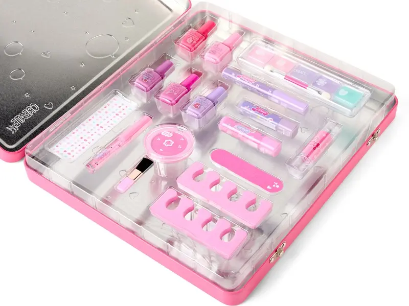 Duża puszka Create It! kryje w sobie bogaty zestaw kolorowych kosmetyków dla dzieci, które chcą spróbować swoich sił w makijażu i stylizacji. W środku znajdują się lakiery do paznokci, pomadki, błyszczyki, cienie do powiek, róż, a także akcesoria takie jak pilniczek czy separatory do palców, dzięki którym zabawa staje się jeszcze bardziej realistyczna. Całość zapakowana jest w efektowną, metalową puszkę z rączką, która przypomina prawdziwą walizeczkę. Dzięki różnorodnym elementom dzieci mogą tworzyć własne stylizacje, uczyć się dobierania kolorów i ćwiczyć precyzję ruchów. To świetny sposób na rozwijanie kreatywności i wyobraźni, a także na wspólną zabawę z przyjaciółmi w domowe spa czy salon piękności. Kosmetyki są przeznaczone dla dzieci powyżej 6 roku życia i wykonane z myślą o ich bezpieczeństwie. Zestaw zawiera wiele produktów w modnych kolorach, które pozwalają na długą i urozmaiconą zabawę. To propozycja, która doskonale sprawdzi się jako większy prezent i efektowna niespodzianka dla małych miłośniczek makijażu.