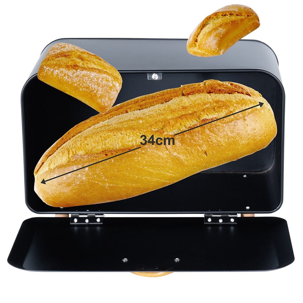 ✅ Chlebak zachowa świeżość pieczywa - Chlebak skutecznie chroni pieczywo przed wysychaniem, zapewniając jego dłuższą świeżość i smakowitość. Zabezpiecza pieczywo przed dostępem powietrza. Chlebak ma wymiary zewnętrzne 35,5 x 21 x 23,5 cm.