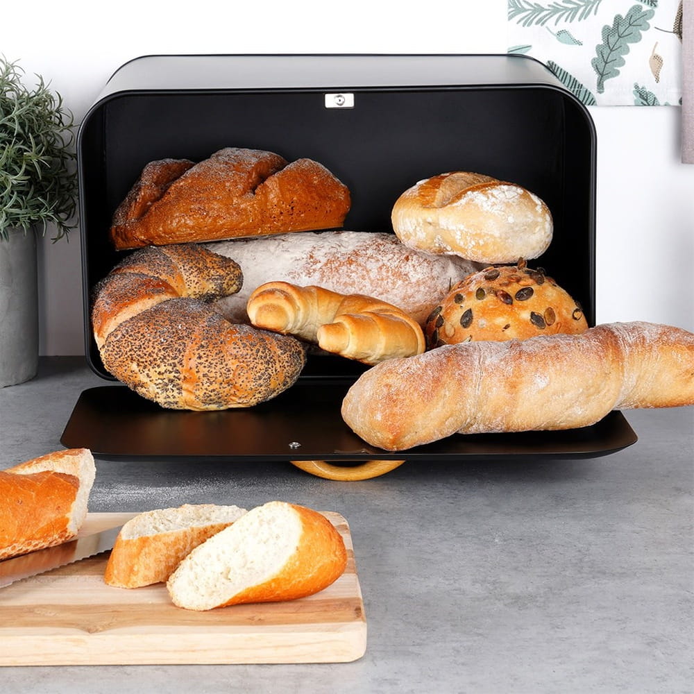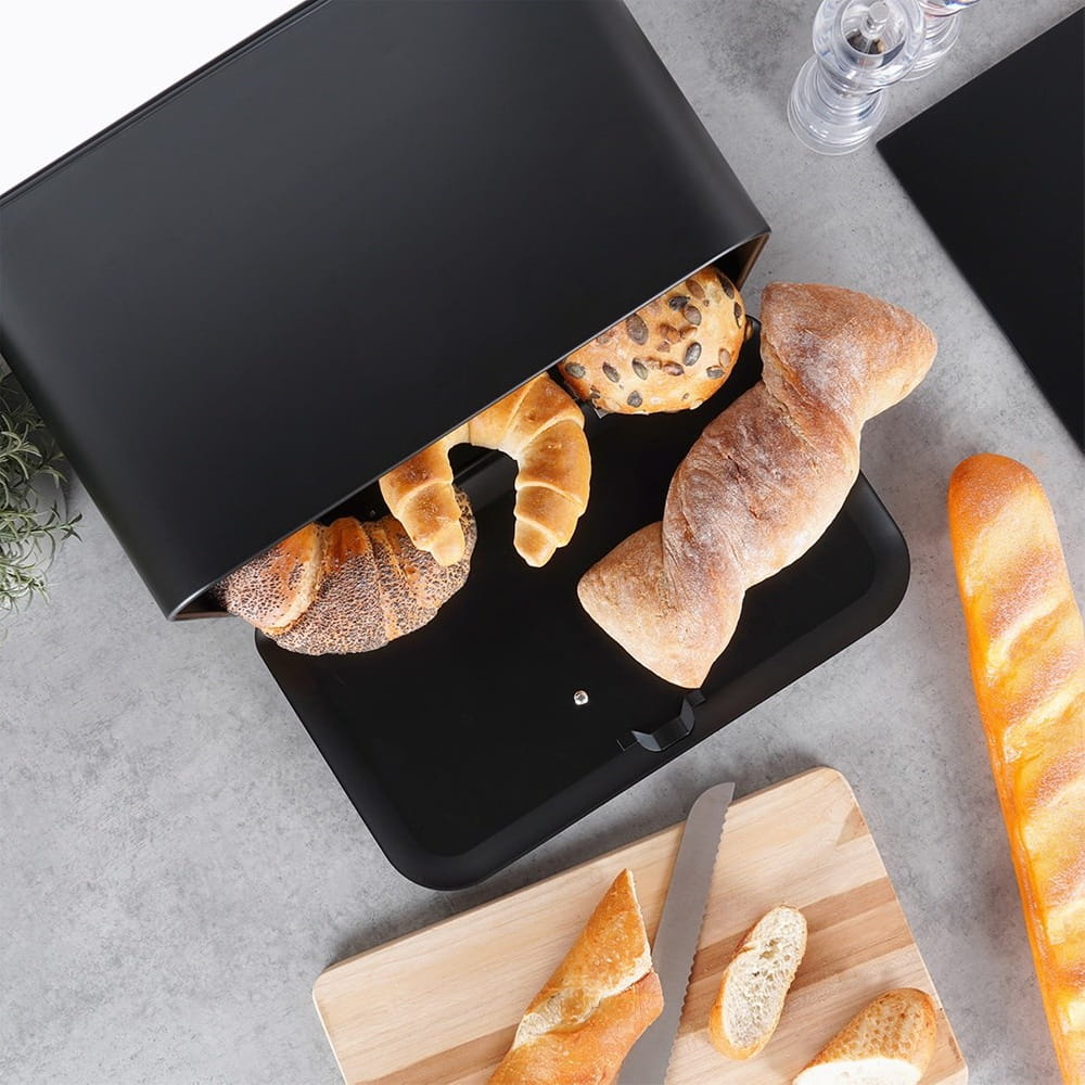 ✅ Wygodne otwieranie i zamykanie - Posiada zamknięcie w formie uchylnej pokrywy. Mechanizm zamknięcia został zaprojektowany z myślą o codziennym użytkowaniu, co sprawia, że otwieranie i zamykanie chlebaka jest szybkie i wygodne.