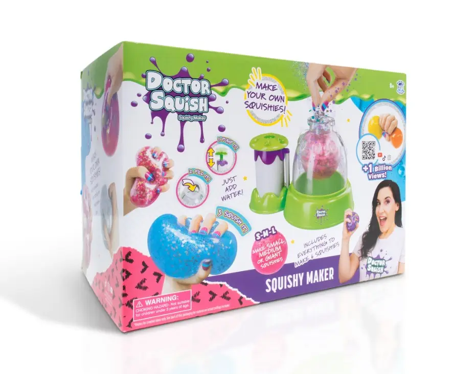 Fabryka gniotków od Doctor Squish - teraz i Ty możesz stworzyć swoje własne, niepowtarzalne gniotki! Doctor Squish Fabryka Gniotków to zestaw, który pozwala ożywić magię squishies w domowym zaciszu. Stwórz własne, unikatowe gniotki squishy! Wszystko, czego potrzebujesz do ekscytującej zabawy z ich tworzeniem, znajdziesz w tym zestawie. Zawartość zestawu: - Instrukcja, - Fabryka gniotków. - 1 łyżka i proszek do slime, - 8 przezroczystych "baloników" do napełnienia, - błyszczące konfetti, - 8 klipsów wielokrotnego uźytku - wstążka Daj się ponieść wyobraźni i zostań nowym doktorem Squish!