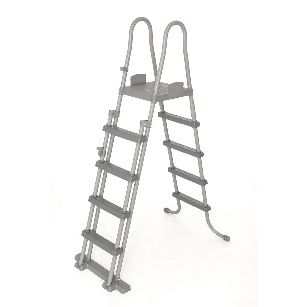 Zwiększ komfort korzystania z basenu dzięki dwustronnej drabince o wysokości 132 cm. Ten solidny model umożliwia łatwe i bezpieczne wchodzenie oraz wychodzenie z basenu naziemnego. Chowane przednie stopnie uniemożliwiają dzieciom samodzielne wejście do wody – co stanowi dodatkowe zabezpieczenie.