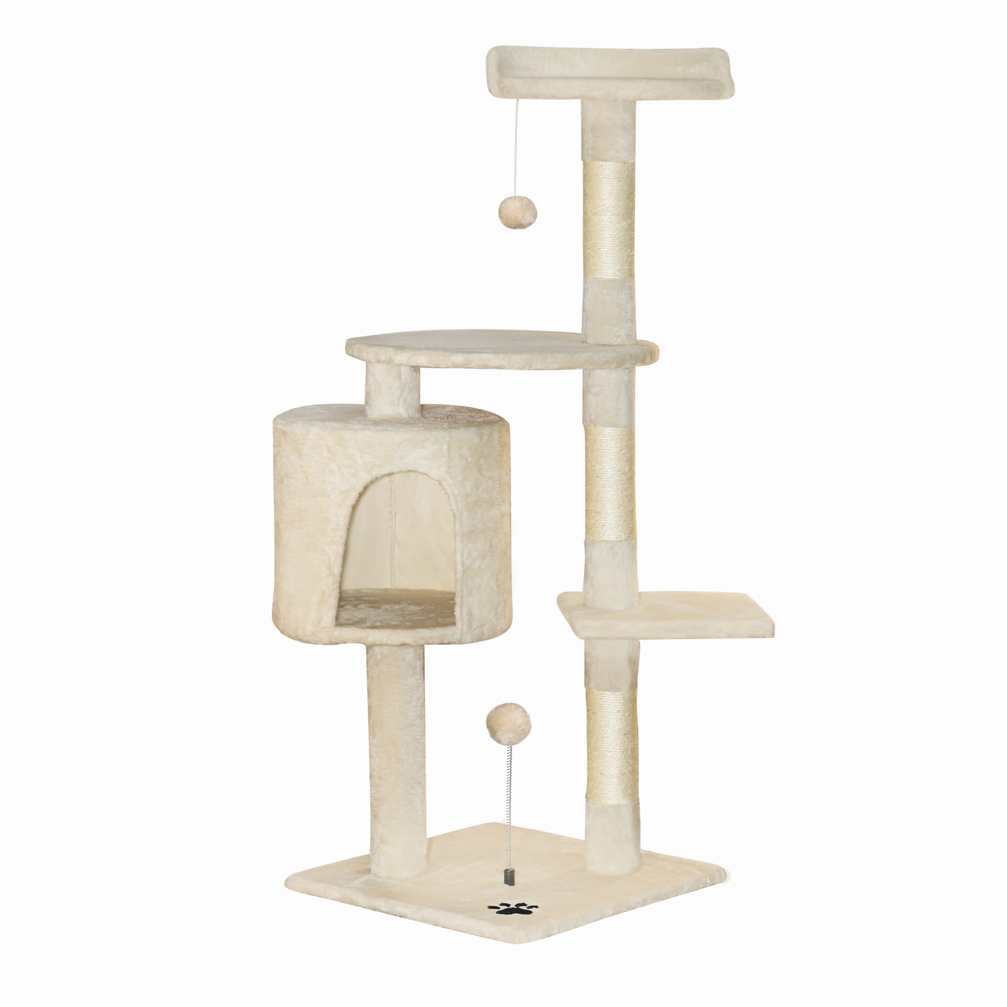 Przedstawiamy drapak dla kota TomiDomi, idealne rozwiązanie dla każdego miłośnika kotów, poszukującego zarówno funkcjonalności, jak i estetyki. Wykonany w eleganckim beżowym kolorze, drapak o wysokości 116 cm zapewnia Twojemu pupilowi doskonałe miejsce do zabawy oraz drapania. Jego przemyślana konstrukcja zawiera przytulną jaskinię, w której kot może się schować, oraz dwie lekkości piłeczki, w tym jedną przyczepioną do sprężyny, co umożliwia dodatkowe aktywności.