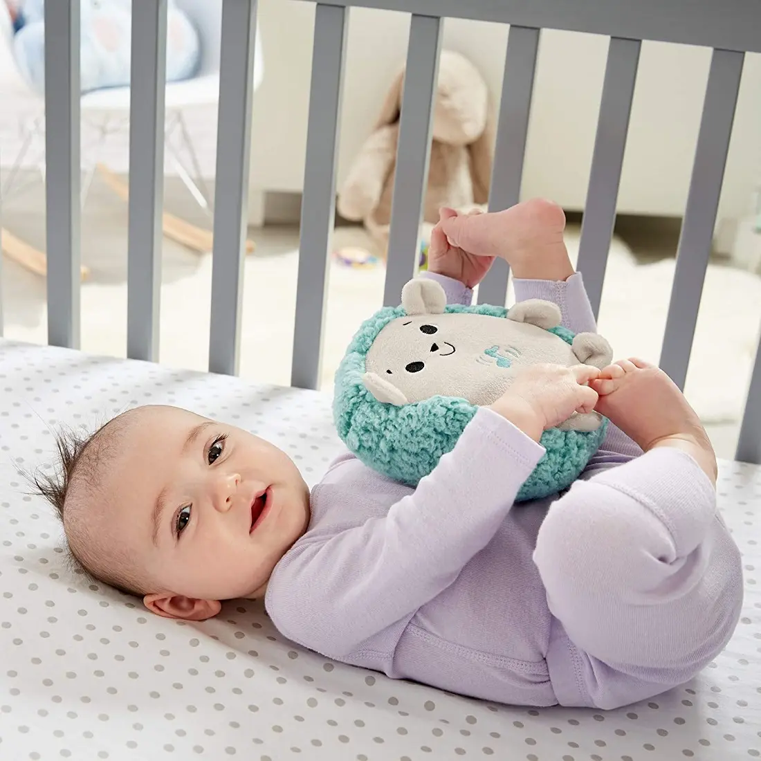 Fisher-Price Jeż Uspokajacz z wibracjami to przyjaciel do przytulania, który pomaga wyciszyć dziecko w domu i w podróży, by mogło spokojnie zasnąć. Maluszek pokocha uroczy pyszczek jeżyka, milutkie materiały, łagodną muzykę i wibracje. Uspokajacz ma 4 różne ustawienia, które możesz dostosować do zmieniających się potrzeb dziecka. Zabawa, która rozwija. Zmysły: miękki materiał, delikatna muzyka i uspokajające wibracje angażują rozwijające się zmysły dotyku i słuchu Twojego malucha. Zdrowe nawyki: ten przenośny uspokajacz pomaga utrzymać regularny rytm układania dziecka do snu – zarówno w domu, jak i w podróży – dzięki czemu łatwiej wypracujecie zdrowe nawyki związane z zasypianiem. Bezpieczeństwo i zadowolenie: uroczy i przyjazny pyszczek jeża, miękkie tkaniny oraz wibracje sprawiają, że ten uspokajacz sprawdzi się idealnie, gdy trzeba będzie ukoić maluszka.