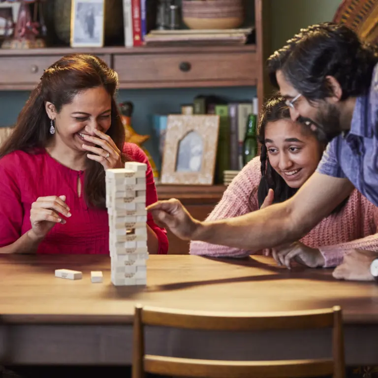 JENGA to kultowa gra, która łączy pokolenia. Podejmij wyzwanie! Ułóż wieżę, aż do samego nieba! Wyciągaj klocki jedną ręką i układaj je na szczycie wieży. Osoba, która przewróci wieżę, przegrywa. Zawartość pudełka: 54 drewniane klocki Jenga, rękaw do układania wieży, instrukcja.