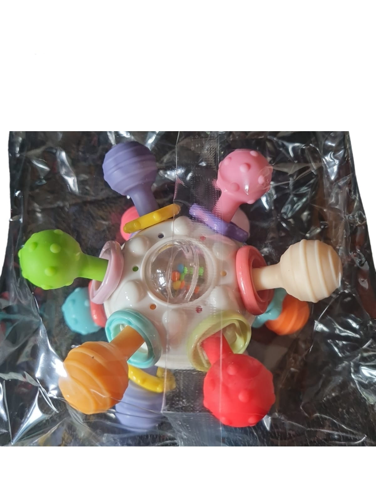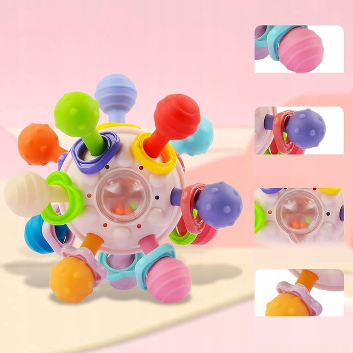 Zmysłowa zabawka ząbkująca dla dzieci - gryzak z grzechotką, idealna zabawka Montessori dla niemowląt na baby shower, urodziny, czy jako prezent na Boże Narodzenie dla chłopców i dziewcząt. Ta edukacyjna zabawka zapewniająca rozwój jest odpowiednia dla noworodków oraz maluchów.