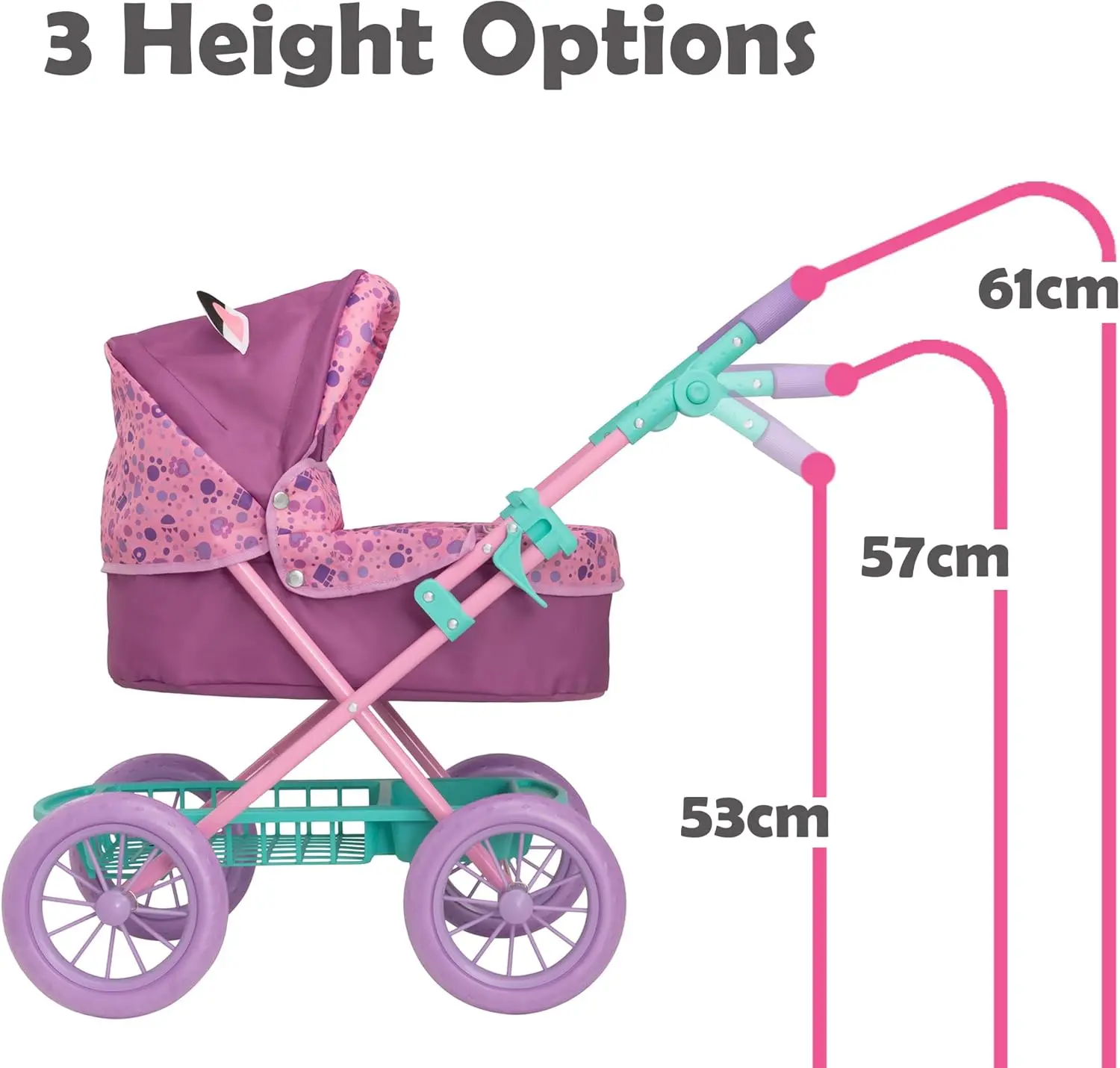 Wózek Koci Domek Gabi to klasyczny wózek dla lalek z w pełni regulowanym wygodnym uchwytem i regulacją wysokości od 53 cm do 61 cm. Wózek dziecięcy ma również regulowany kaptur i duży kosz do przechowywania pod siedzeniem, idealny do przewożenia wszystkich niezbędnych akcesoriów dla swojej lalki. Z uroczym wózkiem z uszkami z Kociego Domku Gabby, Twój maluch może być jak Gabby pilnująca swojej ulubionej lalki.