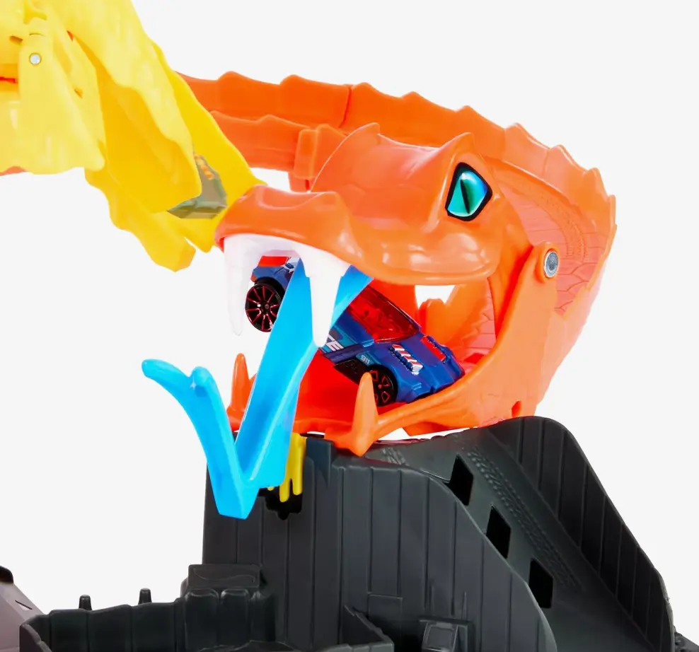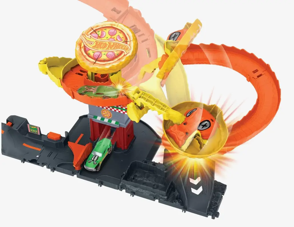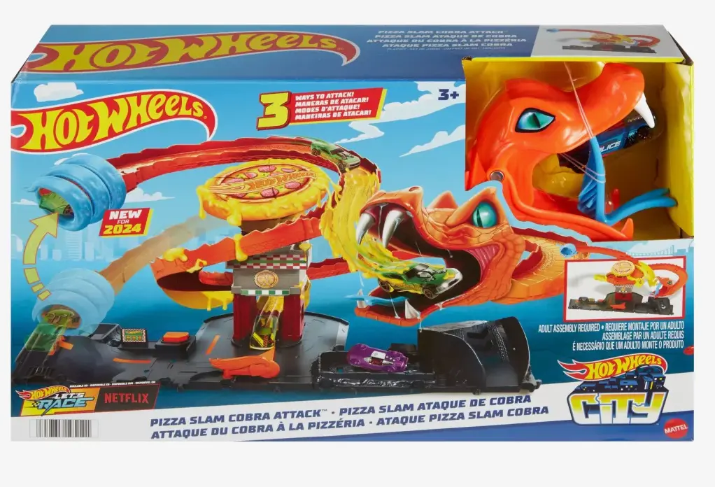 Odjazdowa pizza Atak kobry Hot Wheels to zestaw, który łączy w sobie zabawę, wyścigi i niesamowite efekty! Dynamiczny atak kobry przyciąga wzrok i wywołuje uśmiech na twarzy każdego dziecka. Wystarczy pociągnąć za dźwignię, aby aktywować efekt ataku, co sprawia, że każda zabawa staje się pełna akcji. Dzięki solidnej konstrukcji, ten tor jest idealny do codziennych przygód i emocjonujących wyścigów.