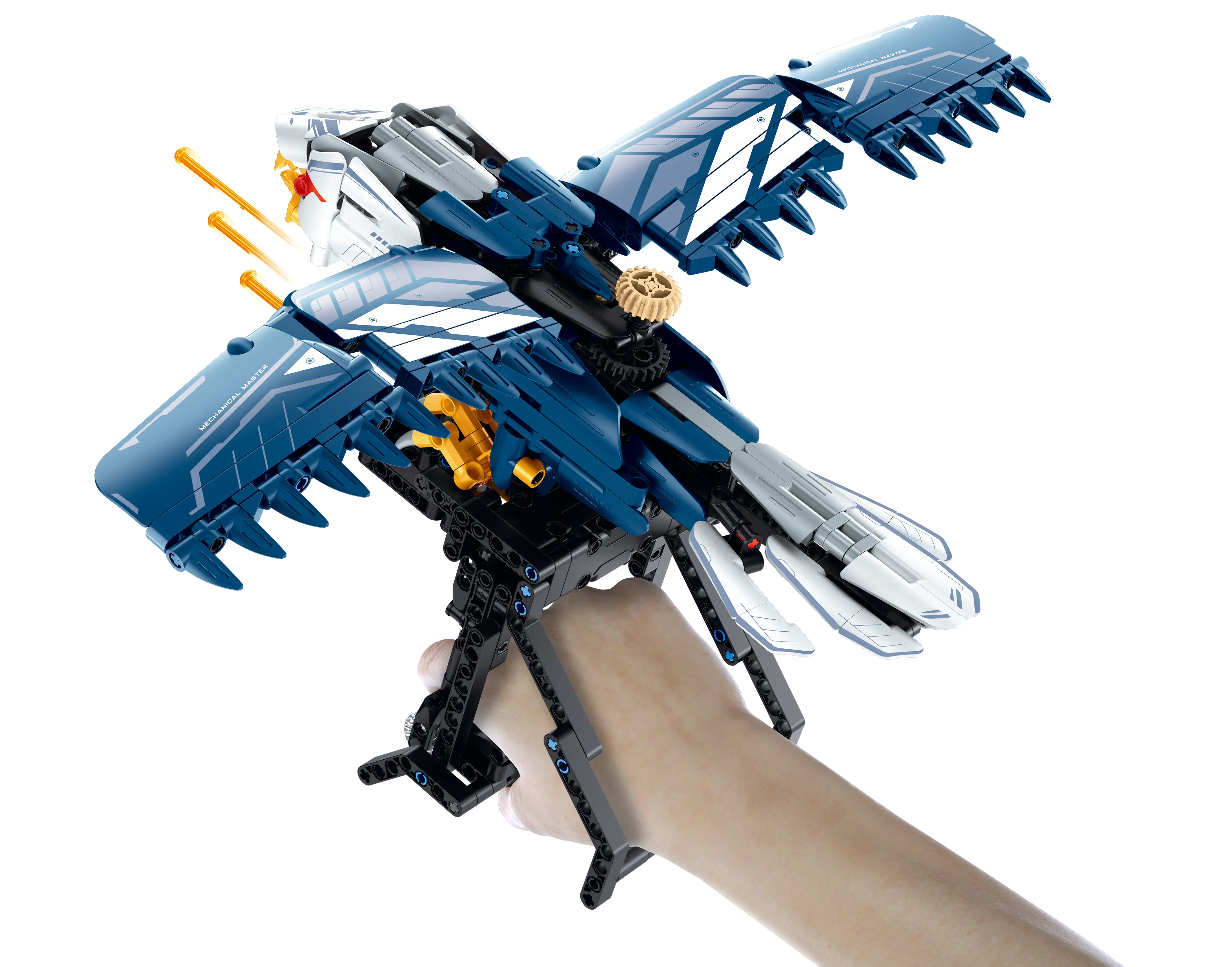 Przygotuj się na niekończące się godziny zabawy i kreatywności dzięki najnowocześniejszym klockom konstrukcyjnym, które ożywią Twoje marzenia! Niezależnie od tego, czy jesteś entuzjastą samochodów, czy fanatykiem robotów, ta rewolucyjna, nowa marka klocków konstrukcyjnych jest tutaj, aby przenieść zabawę na zupełnie nowy poziom! Klocki przedstawiają mechaniczną rękawicę w kształcie sokoła z możliwością strzelania pociskami. Zestaw składa się z 630 elementów.