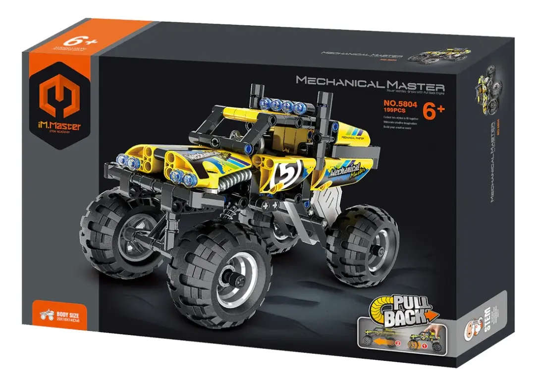 Przygotuj się na niekończące się godziny zabawy i kreatywności dzięki najnowocześniejszym klockom konstrukcyjnym, które ożywią Twoje marzenia! Niezależnie od tego, czy jesteś entuzjastą samochodów, czy fanatykiem robotów, ta rewolucyjna, nowa marka klocków konstrukcyjnych jest tutaj, aby przenieść zabawę na zupełnie nowy poziom! Klocki przedstawiają ekscytującą terenówkę iM.Master Pull Back Truck w kolorze żółtym! Zestaw składa się ze 199 elementów.