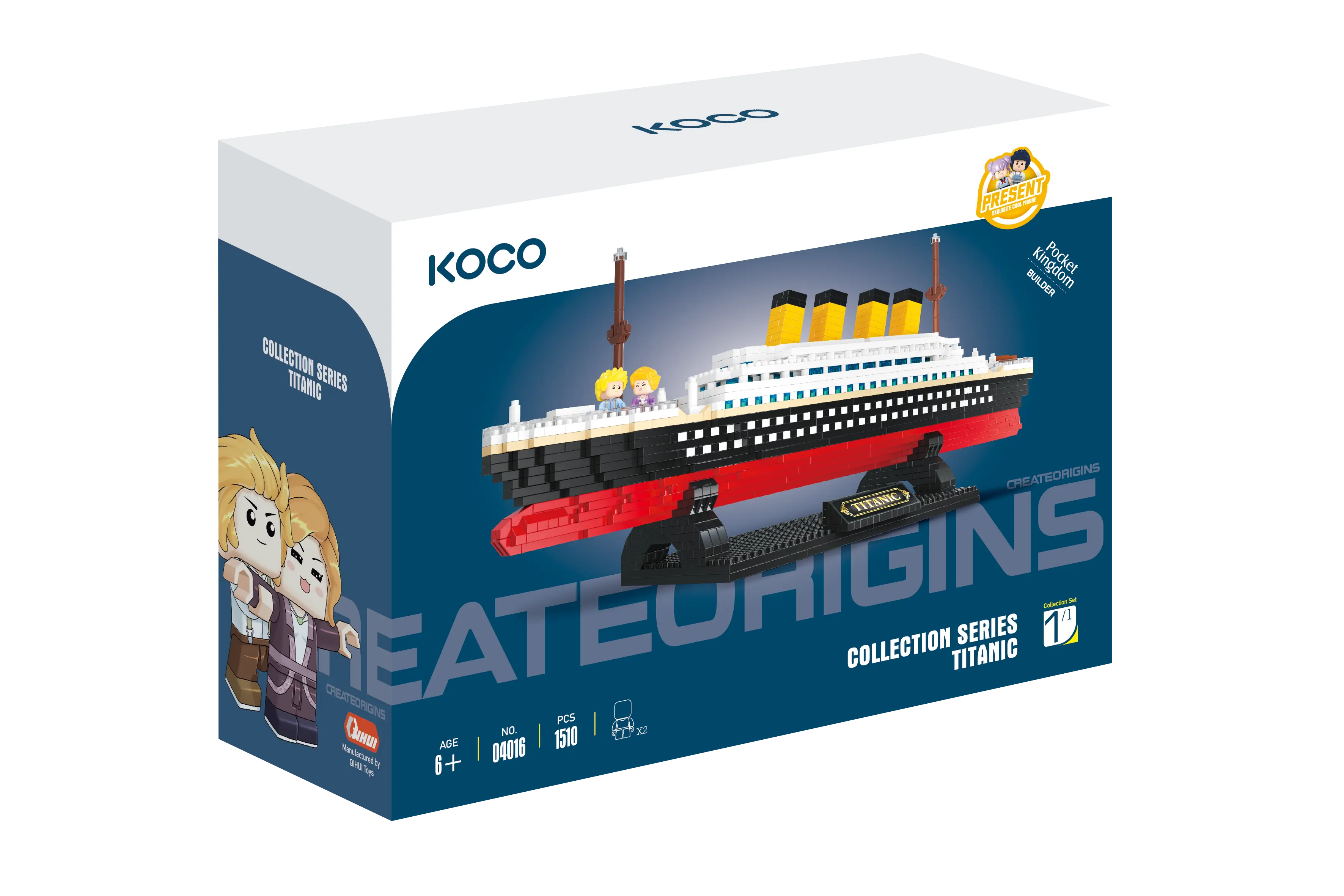 Klocki KOCO to innowacyjne zestawy konstrukcyjne, które zachwycają nie tylko dzieci, ale także dorosłych. Dostępne w różnych motywach tematycznych, od prostych klocków po bardziej zaawansowane konstrukcje, stanowią doskonałą formę zabawy edukacyjnej dla dzieci w różnym wieku. Dzięki swoim kompaktowym wymiarom, są doskonałe do tworzenia szczegółowych i bardziej zaawansowanych konstrukcji. Małe klocki sprzyjają rozwijaniu zdolności motorycznych i koncentracji u dzieci, oferując jednocześnie wiele możliwości kreatywnej zabawy. Klocki przedstawiają kultowy statek Titanic z 2 figurkami. Zestaw składa się z 1510 elementów.