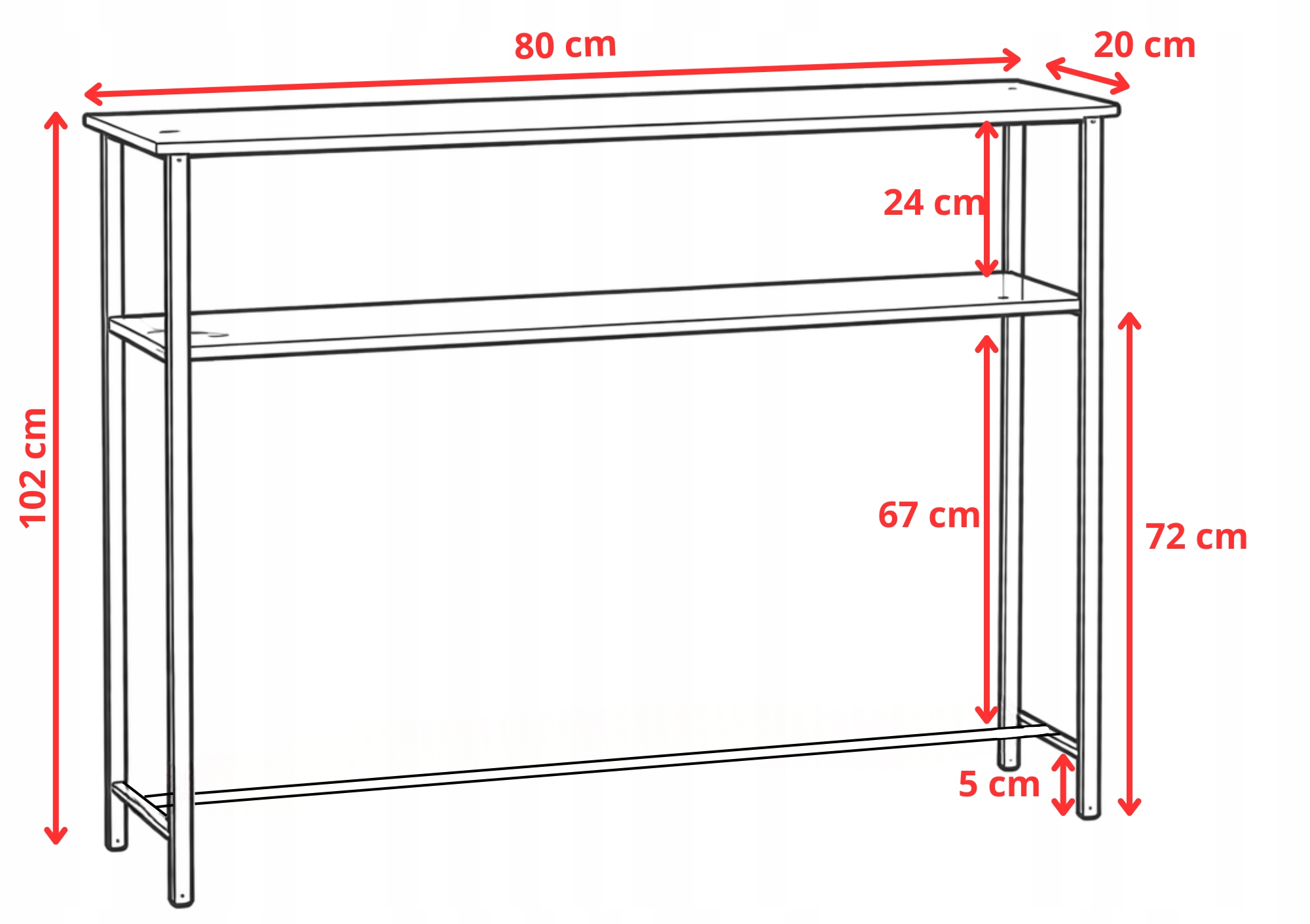 ☑️Wielofunkcyjna konsola o kompaktowych wymiarach 80x20x102 cm to idealne rozwiązanie do nowoczesnych wnętrz. Świetnie sprawdzi się jako półka za kanapę, regał na książki czy konsola do przedpokoju. Minimalistyczna forma i stelaż z metalu tworzą nowoczesny i praktyczny mebel do każdego pomieszczenia. Konsola została wyposażona w regulowane stopki, które umożliwiają dopasowanie wysokości i zapewniają stabilność nawet na nierównym podłożu – podobnie jak w przypadku pralki czy lodówki.