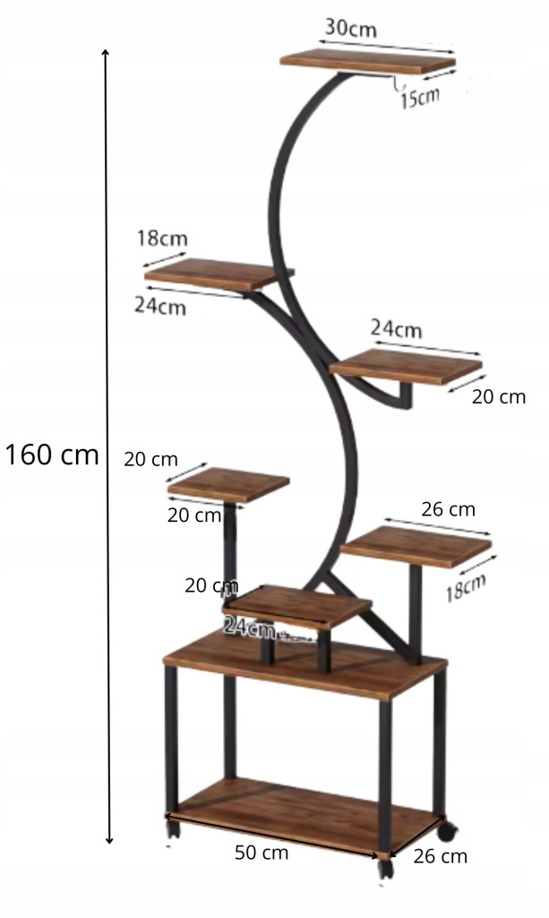 KWIETNIK NA KWIATY NA KÓŁKACH STOJAK METALOWY STOJĄCY LOFT ROŚLINY REGAŁ 160 CM [KWIETNIK19]