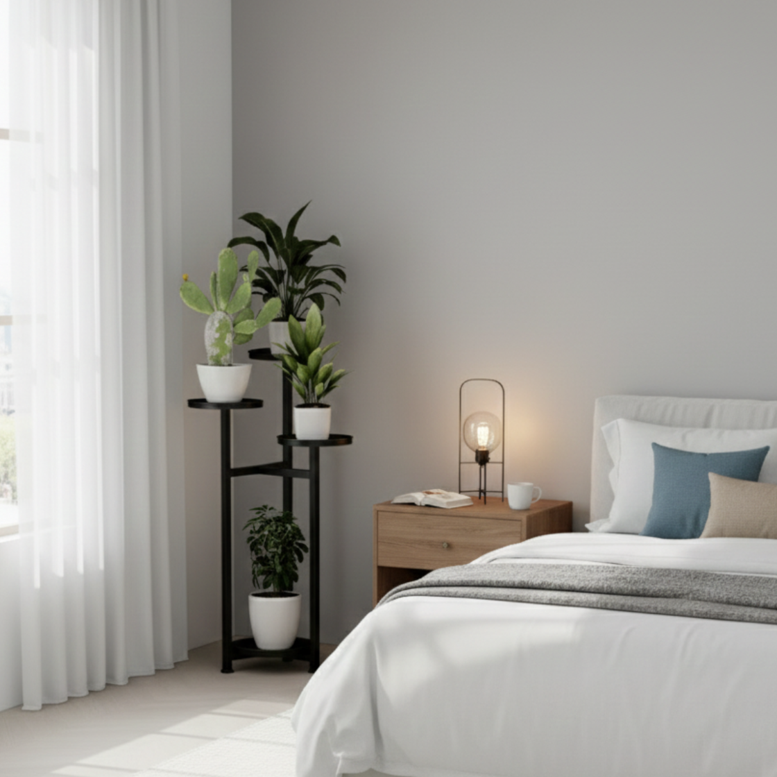 ☑️Ten metalowy kwietnik stojący to minimalistyczne i eleganckie rozwiązanie do ekspozycji roślin. Konstrukcja umożliwia ustawienie 4 doniczek na różnych wysokościach, co pozwala stworzyć spójną i estetyczną kompozycję. Całość wykonana jest w całości z metalu, co nadaje nowoczesny i uporządkowany wygląd. Smukła forma sprawia, że kwietnik nie zajmuje dużo miejsca. Idealnie pasuje do wnętrz urządzonych w stylu nowoczesnym i loftowym.