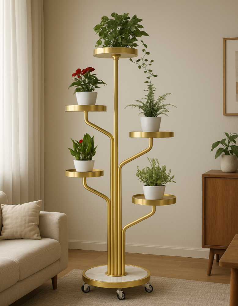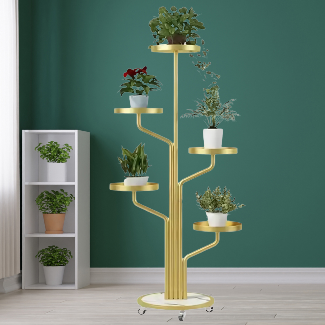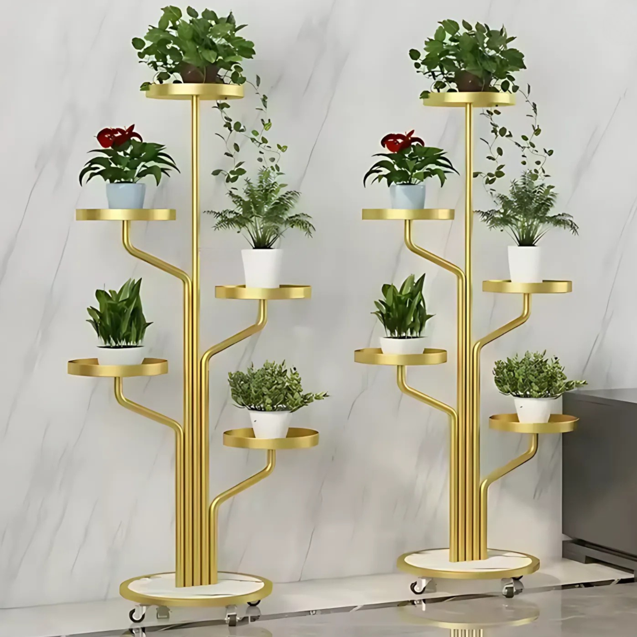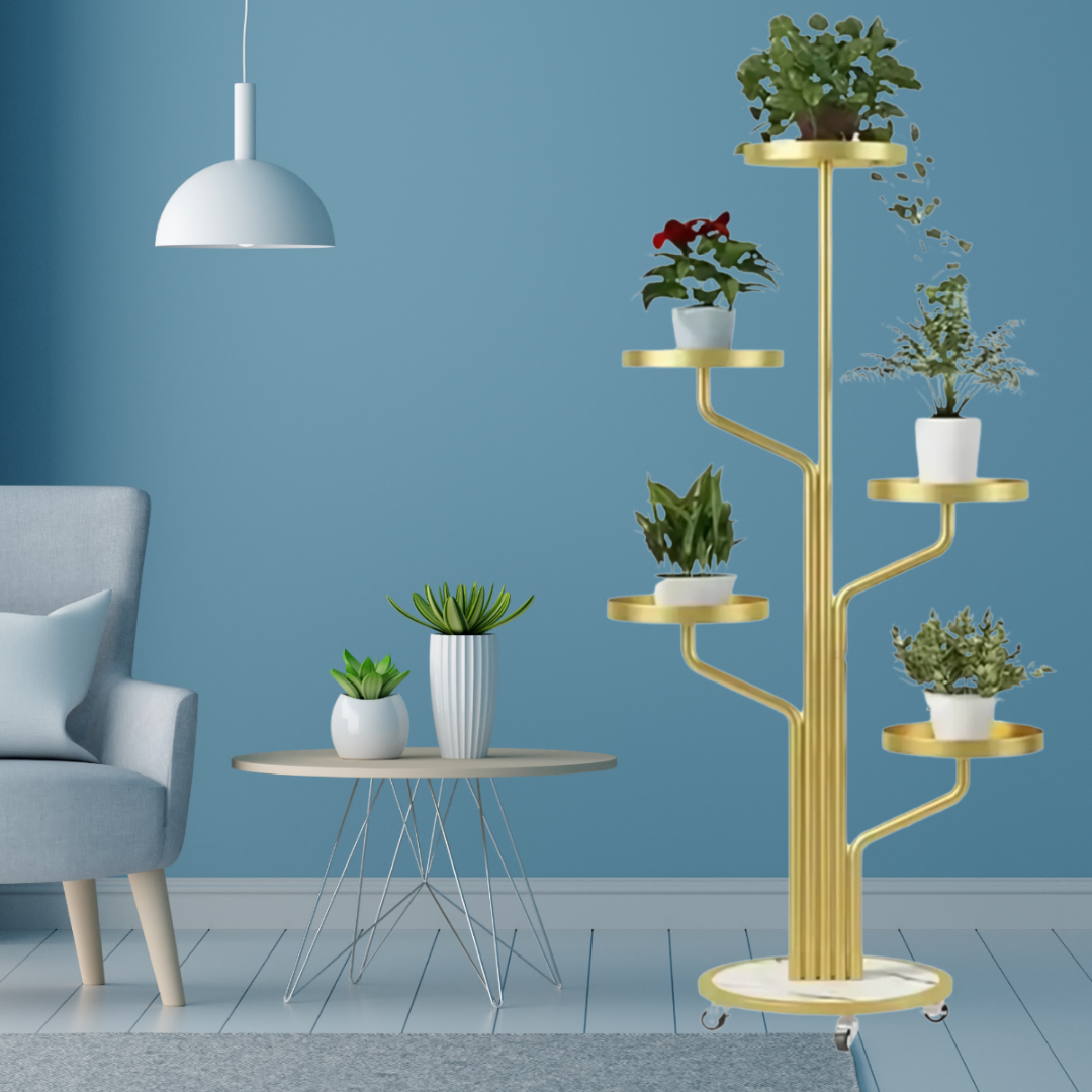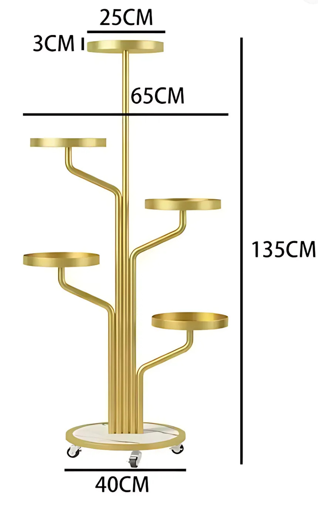 KWIETNIK STOJAK NA ROŚLINY METALOWY STOJĄCY REGAŁ NA KÓŁKACH ZŁOTY 135 CM [KWIETNIK9]