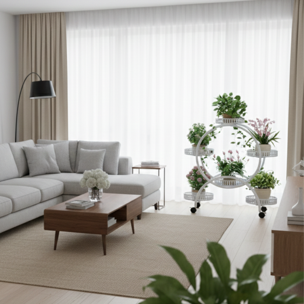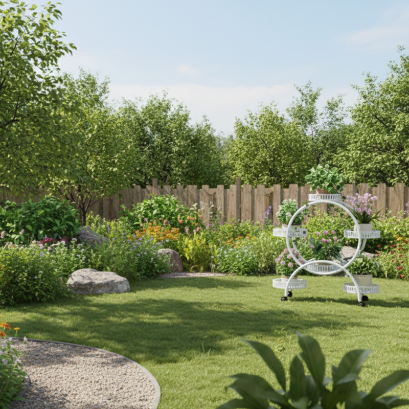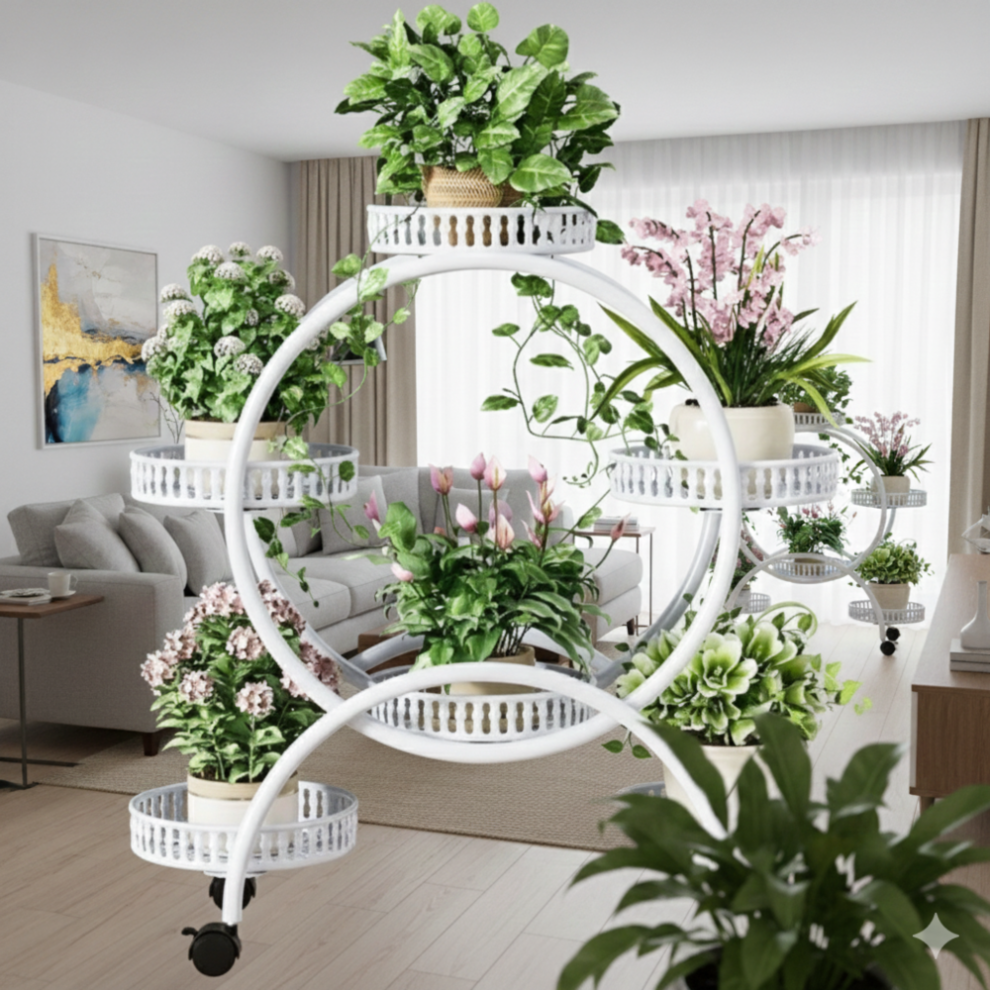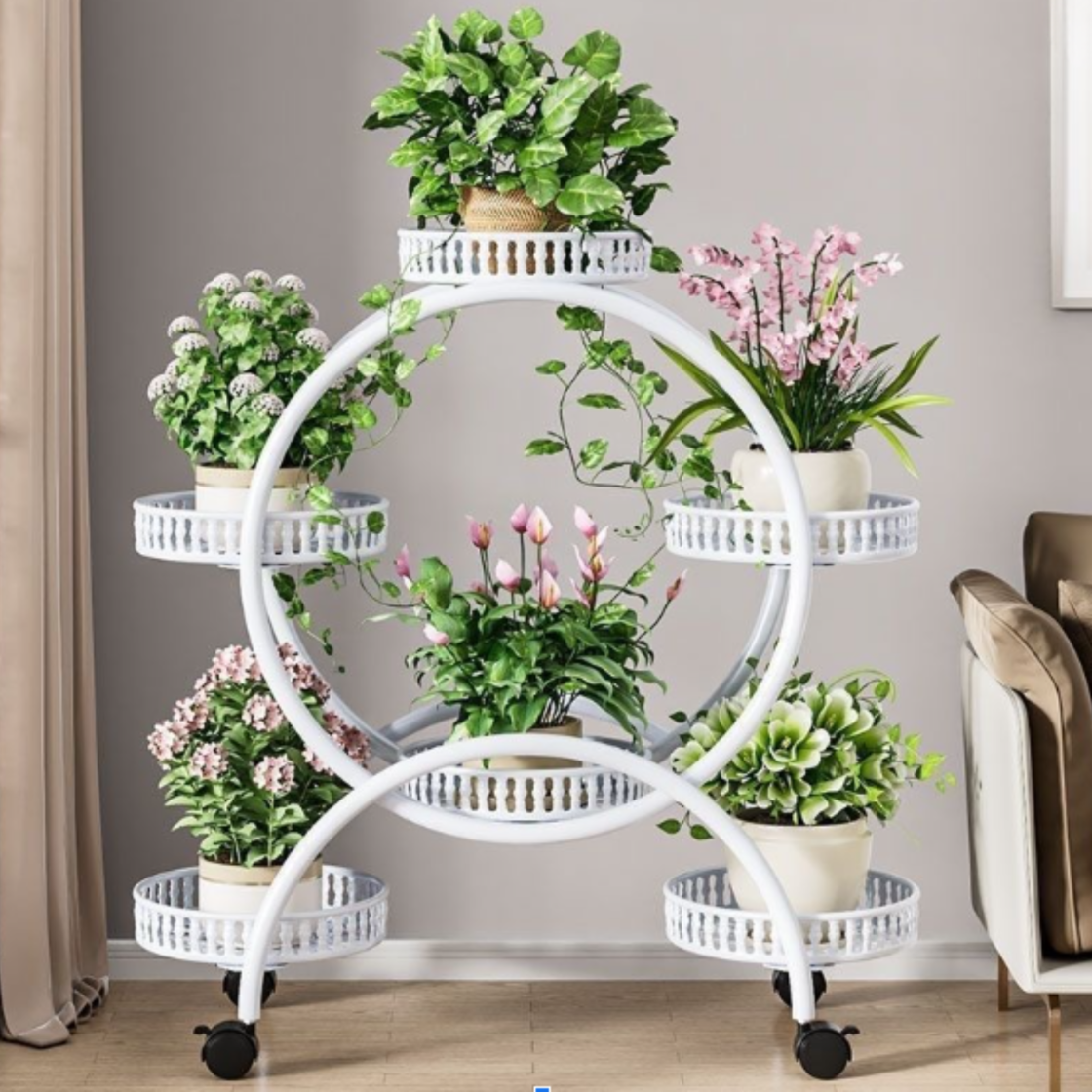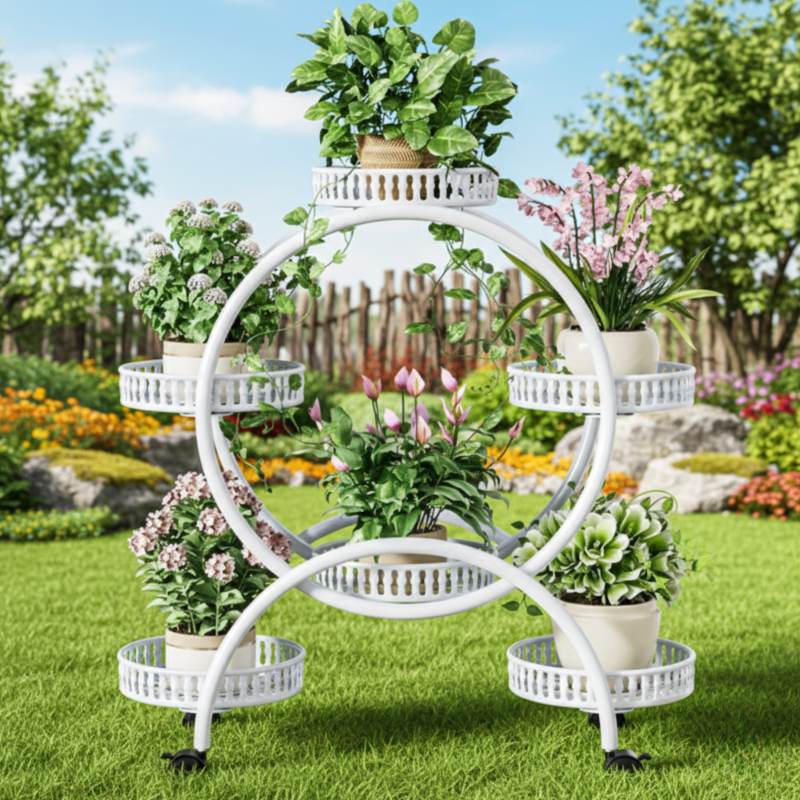 KWIETNIK STOJAK PIĘTROWY NA ROŚLINY KWIATY NA KÓŁKACH OKRĄGŁY BIAŁY [KWIETNIK11]