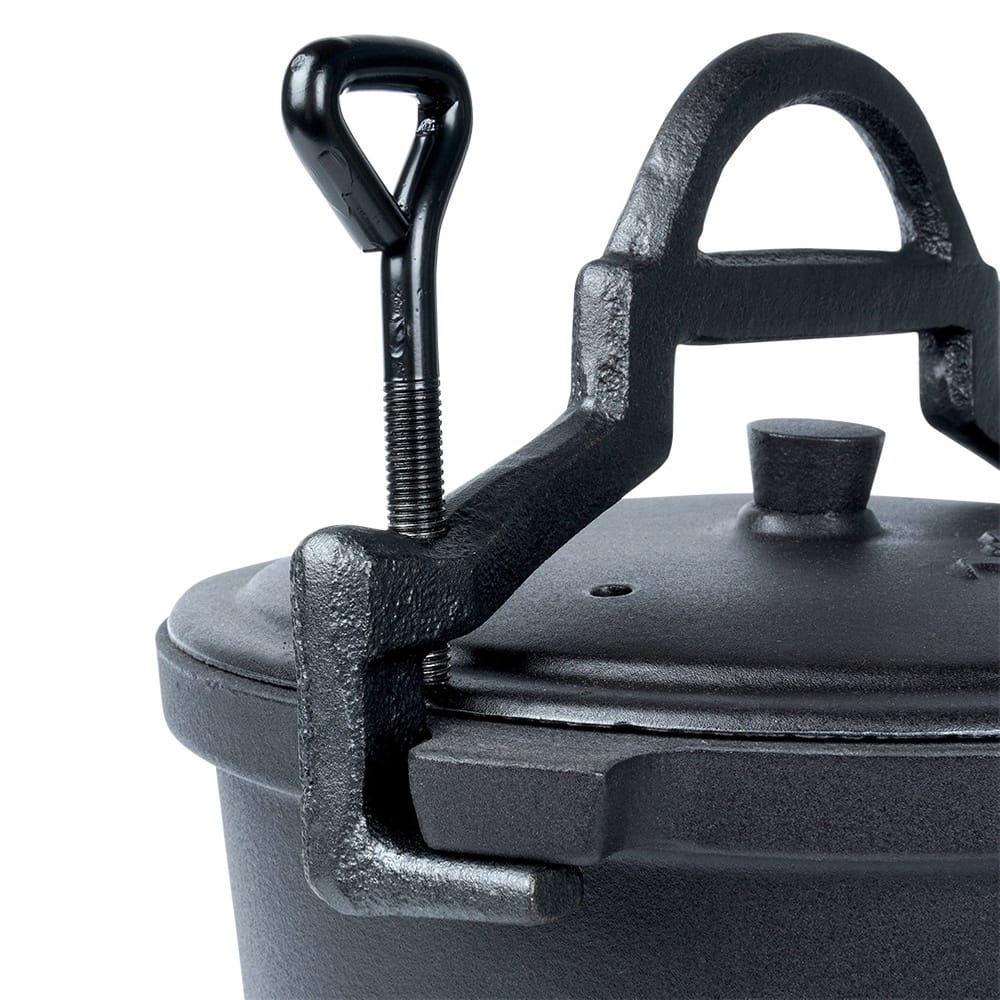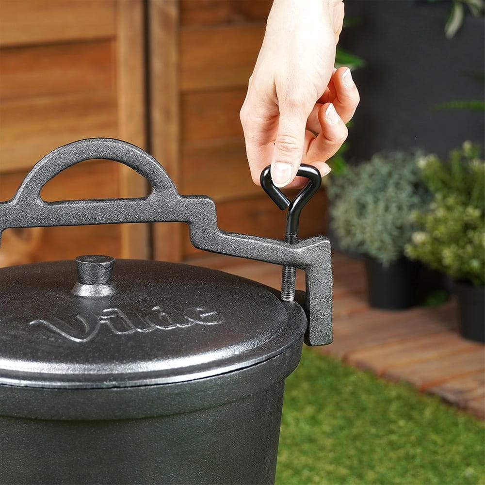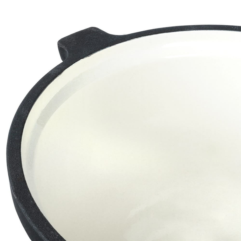 Solidny, ciężki i trwały – kociołek marki Vilde z linii Cast Line to idealne naczynie do gotowania, duszenia, smażenia i pieczenia na otwartym ogniu. Dzięki emaliowanemu wnętrzu w kolorze beżowym potrawy nie przywierają i są łatwe do wyczyszczenia. Garnek posiada trzy stabilne nóżki, uchwyt do zawieszenia oraz pokrywkę z otworem wentylacyjnym i śrubami zabezpieczającymi.
