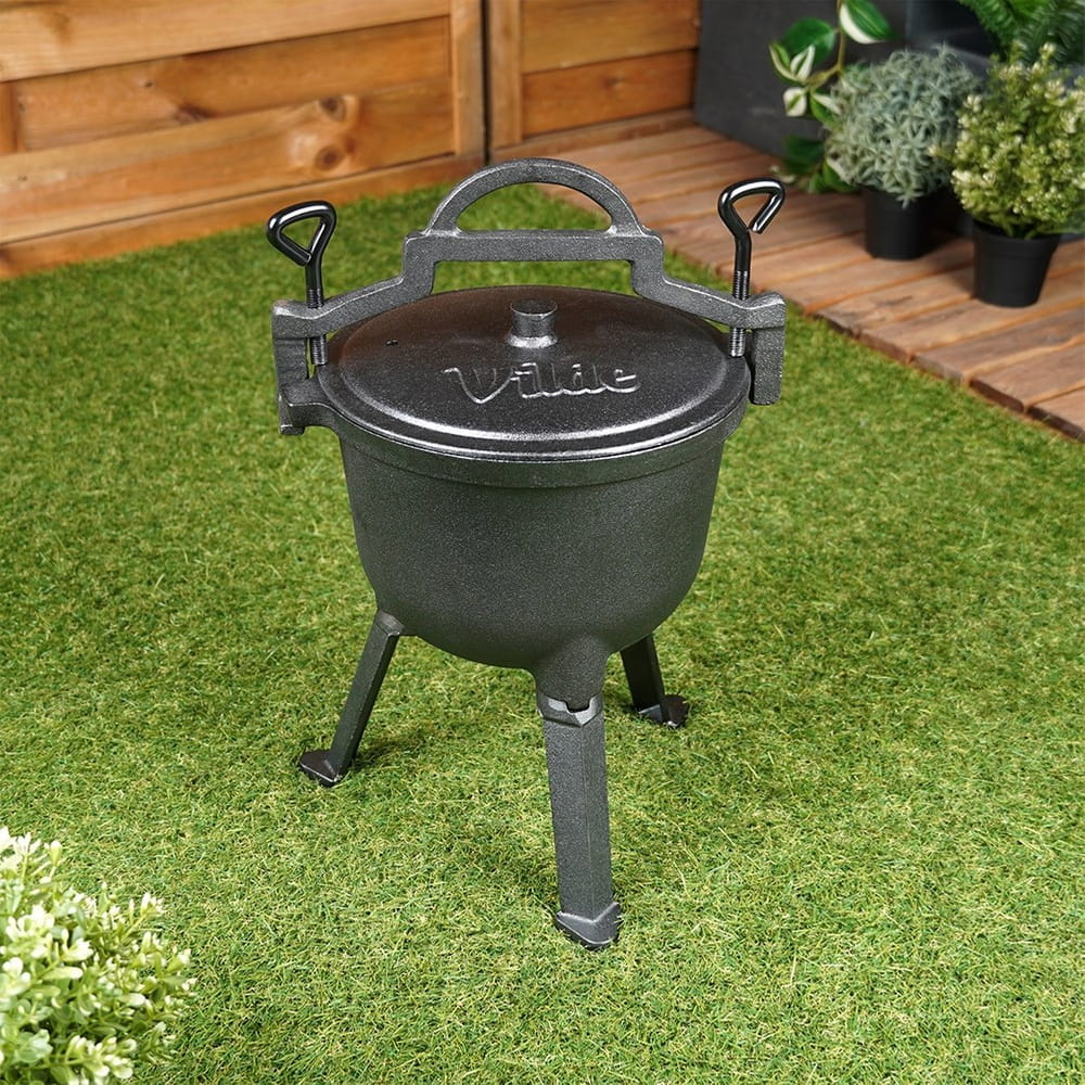 Kociołek żeliwny emaliowany 4L na nóżkach z pokrywką – niezastąpiony towarzysz ogrodowych spotkań, kempingów i grillowania!