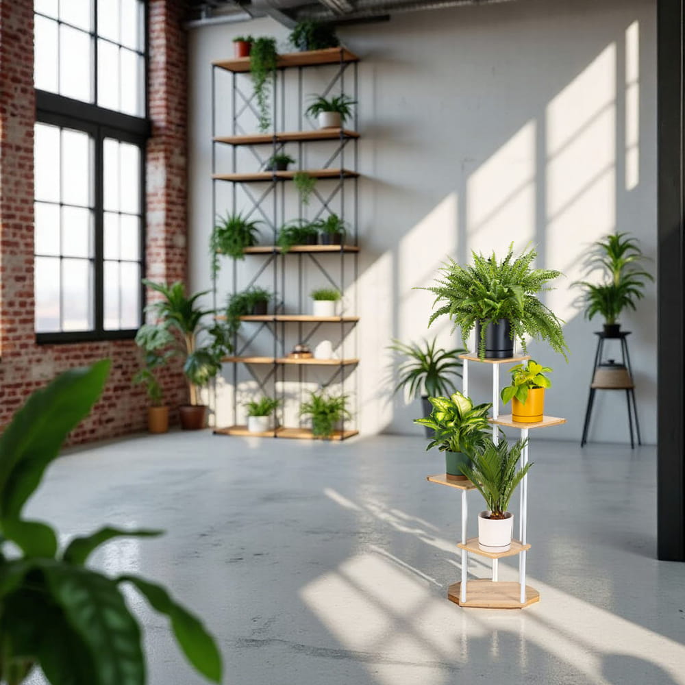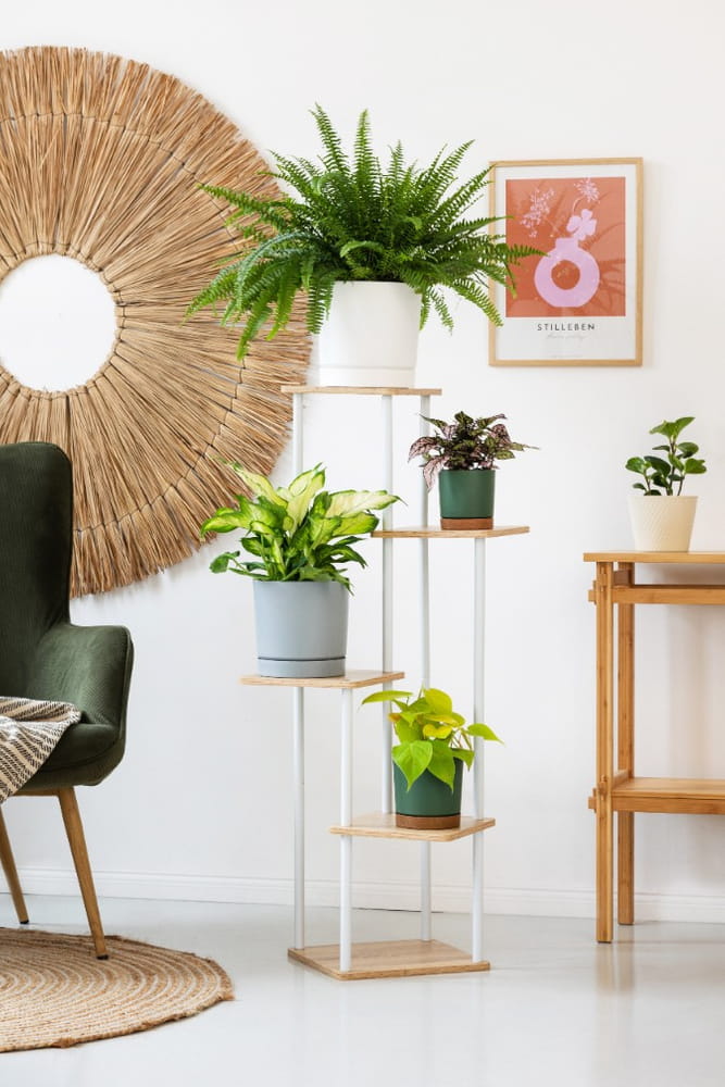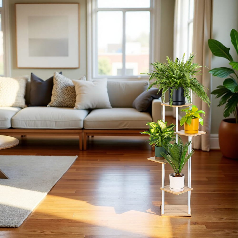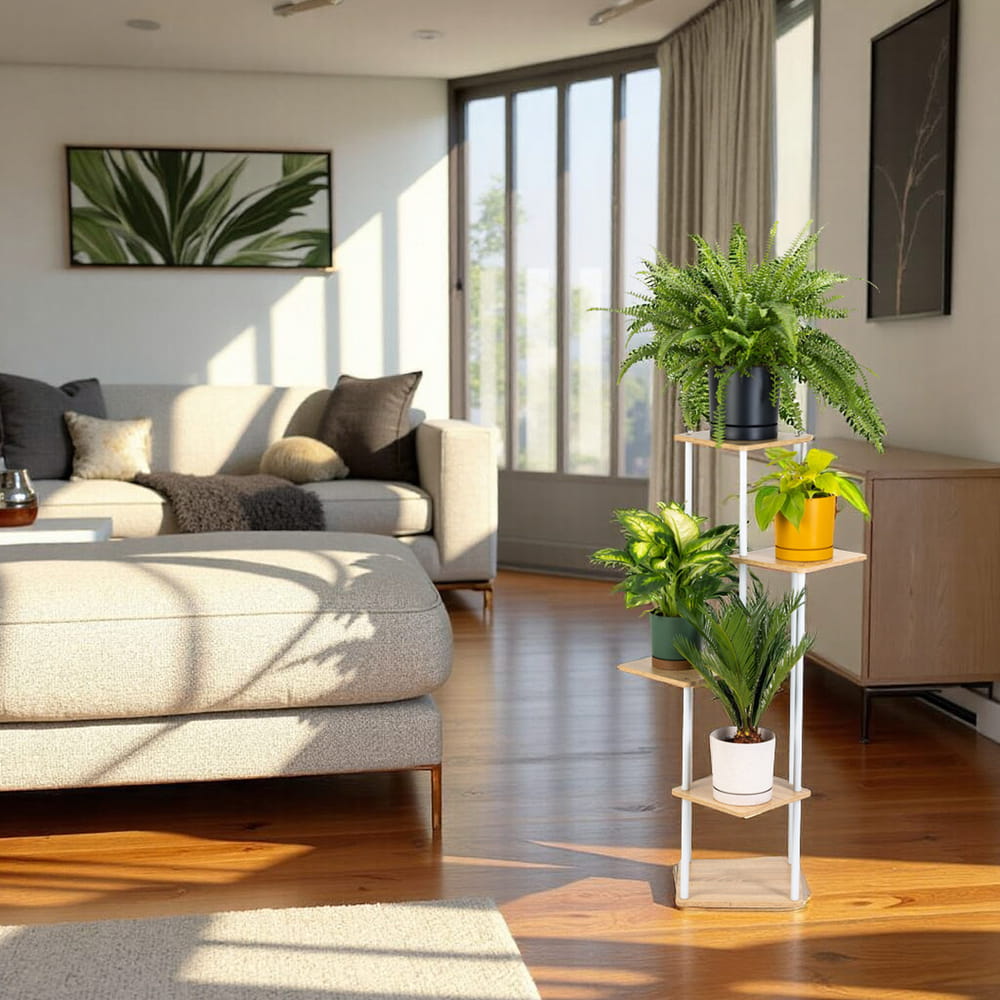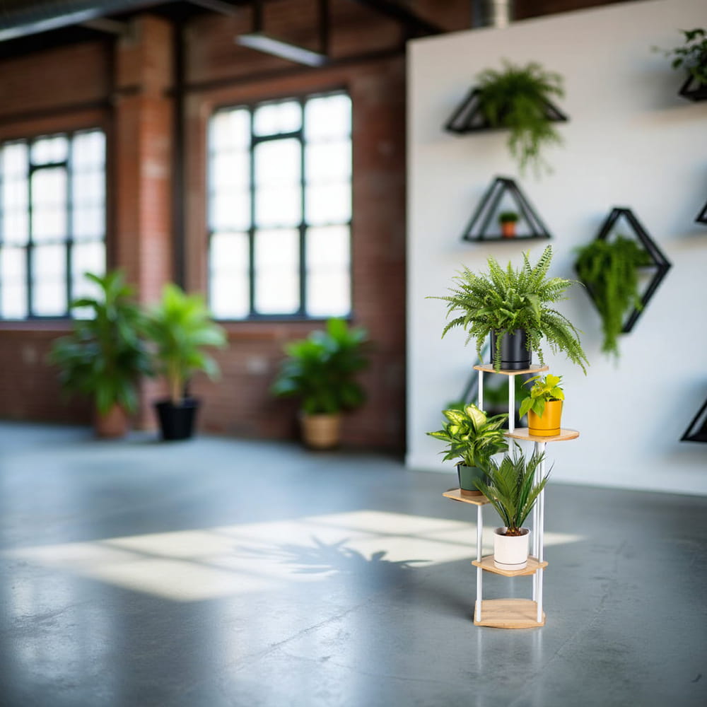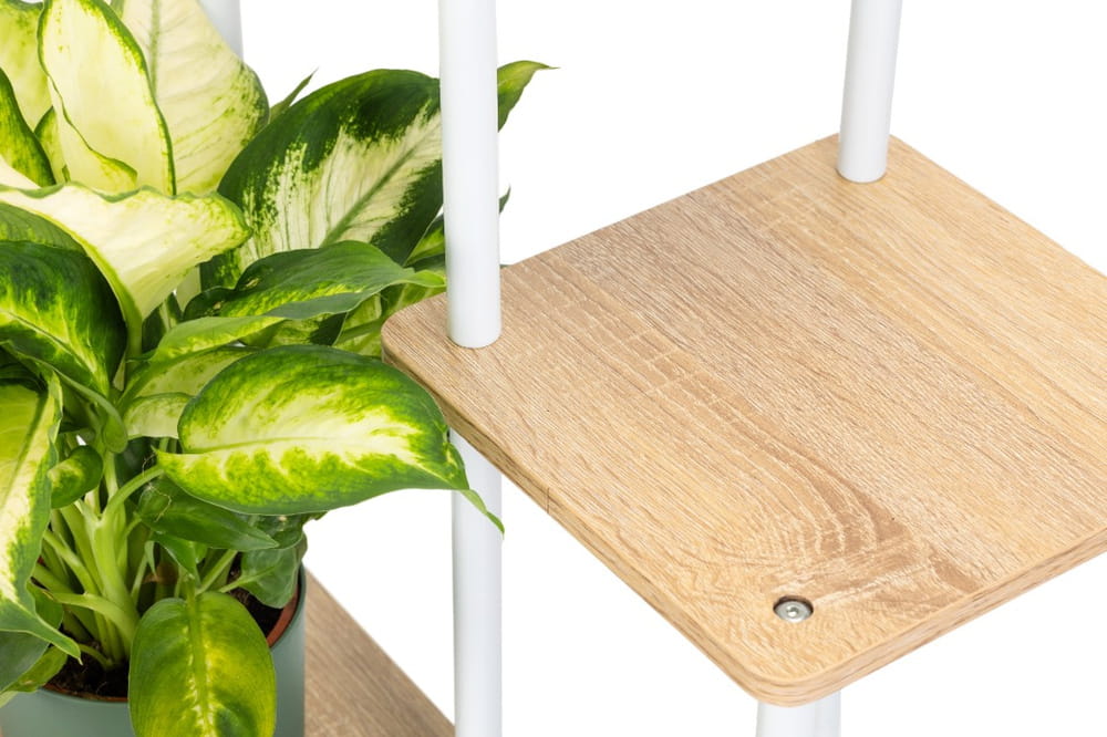 Miłośnicy roślin docenią nowoczesny kwietnik, który doskonale eksponuje każdy kwiat i doniczkę. Stojak na kwiaty został zaprojektowany tak, aby każda z roślin miała swoją przestrzeń do wzrostu. Wielopoziomowa konstrukcja kwietnika sprawdzi się przy roślinach o różnej wielkości i długości liści. Zapewni odpowiednią przestrzeń do wzrostu zarówno sukulentom, jak i palmom znajdującym się na kwietniku.