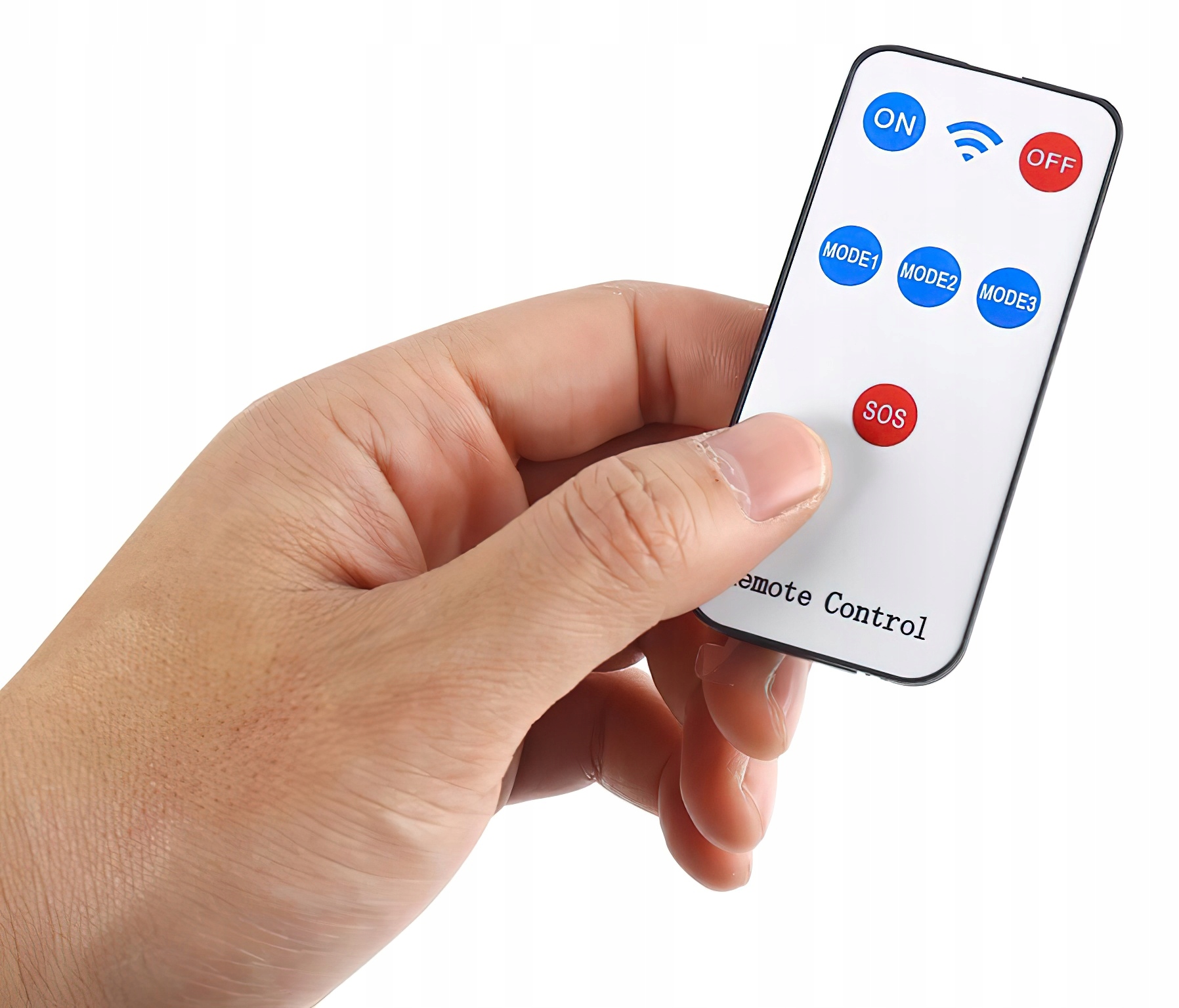 ✅ Sterowanie: pilot z funkcjami ON / OFF / MODE 1–3