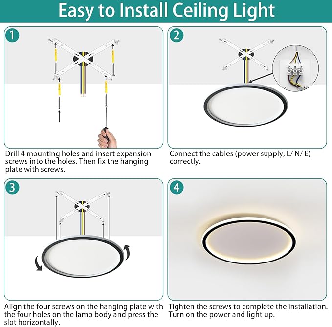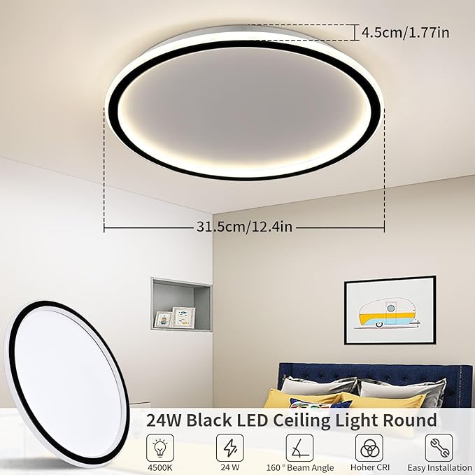 Podsumowanie: Lampa sufitowa LED o średnicy 31,5 cm i mocy 24 W jest idealnym wyborem dla osób szukających energooszczędnego, stylowego oświetlenia wtórnego. Wysokiej jakości materiały oraz łatwość instalacji sprawiają, że jest to funkcjonalne i estetyczne rozwiązanie dla różnych pomieszczeń.