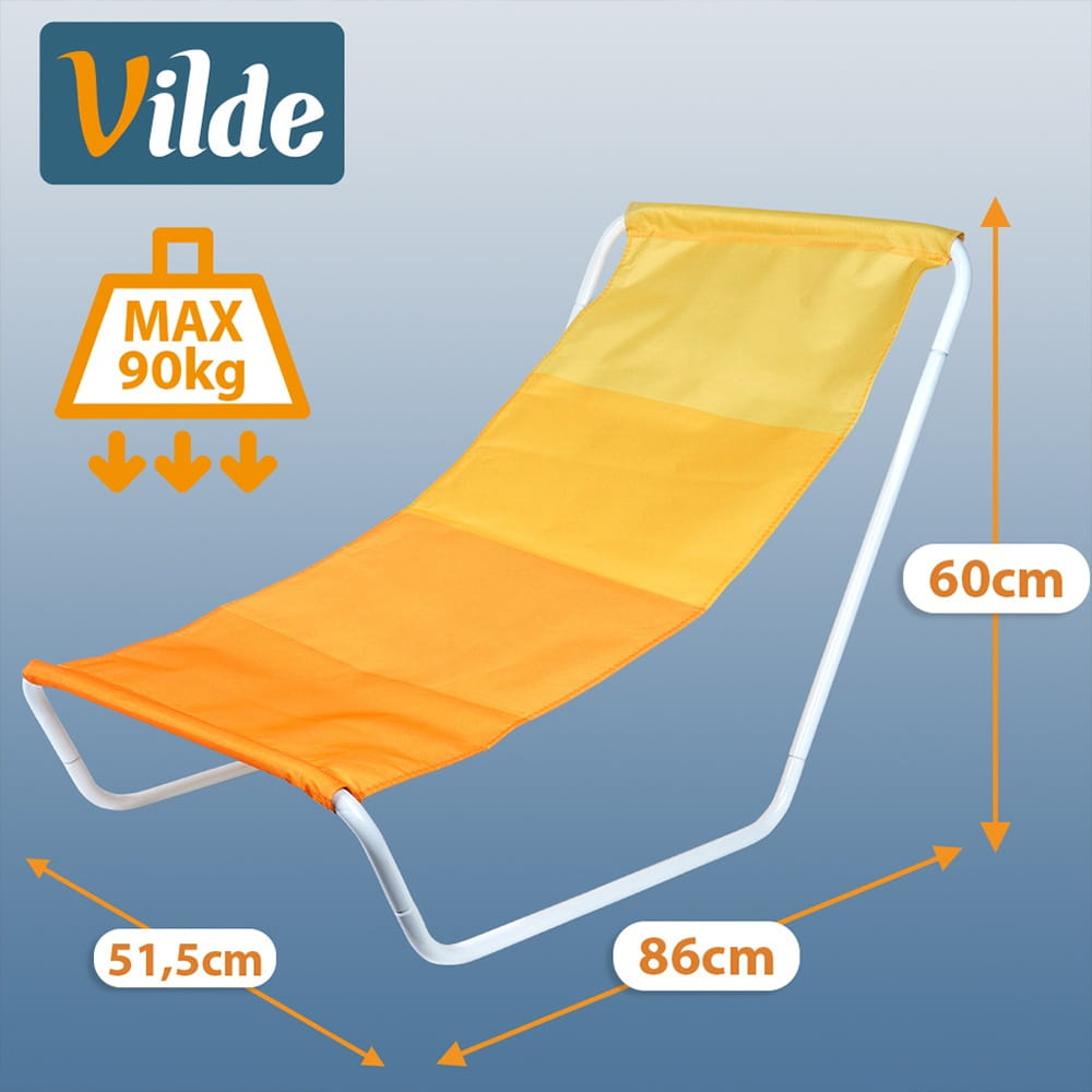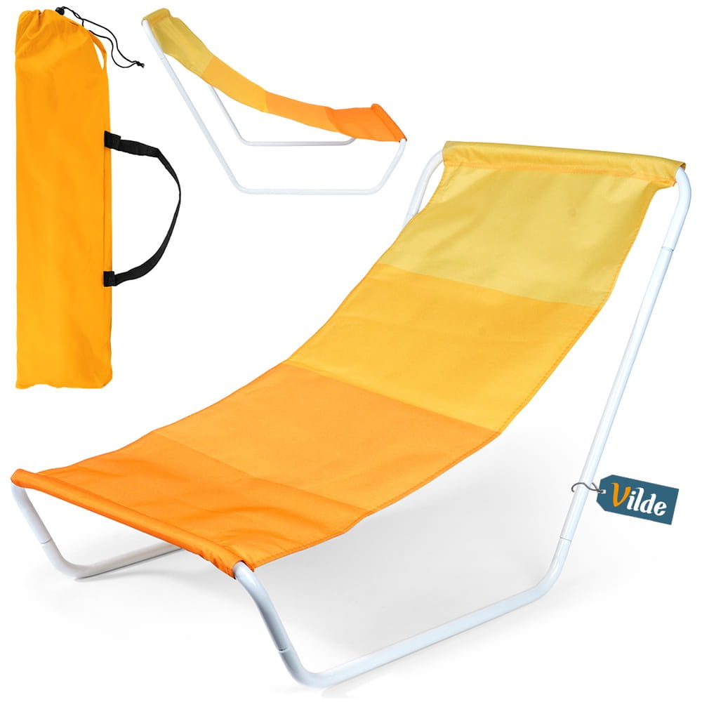 Leżak ogrodowy w żółtym kolorze. Leżak zapewni nam komfort i chwilę relaksu, jest świetną alternatywą dla koców oraz ręczników plażowych. Możemy korzystać z niego zarówno w ogrodzie, ale także, dzięki możliwości złożenia, w łatwy sposób zabierzemy go ze sobą na plażę, wycieczkę czy biwak. Oryginalny produkt marki Vilde. Wyprodukowano zgodnie z europejskimi standardami.