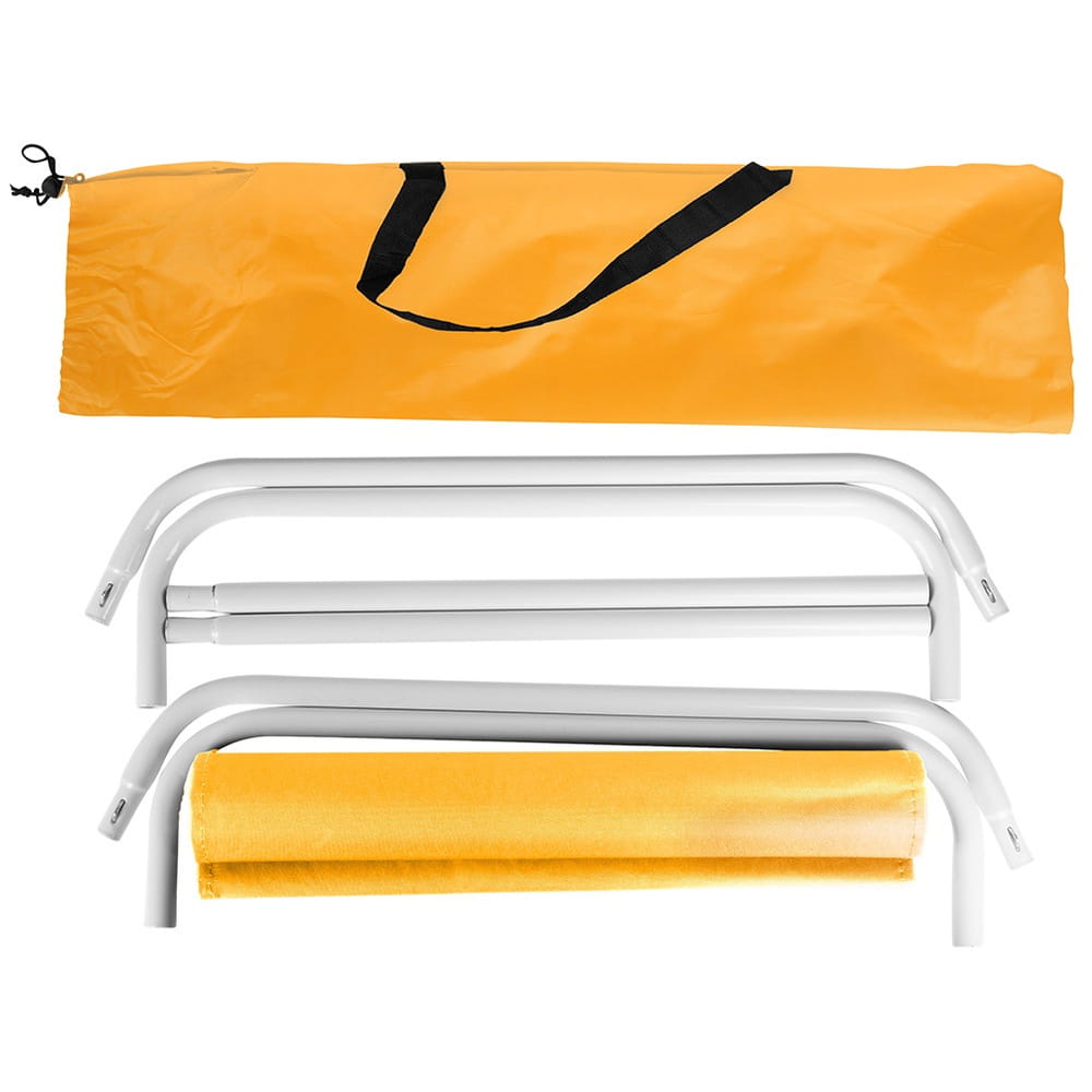 ✅ Metalowa konstrukcja w kolorze białym - Konstrukcja leżaka jest lekka a jednocześnie wytrzymała, wykonana z metalu w kolorze białym. Siedzisko wykonane z odpornej tkaniny poliestrowej w żółtych odcieniach.