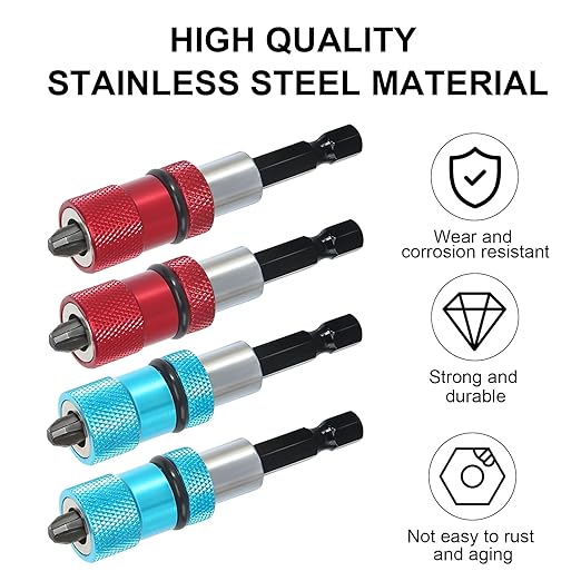 Wysoka jakość materiałów - Uchwyt bitów został wykonany z wysokiej jakości stali nierdzewnej i stali chromowo-wanadowej, co gwarantuje trwałość oraz stabilne i niezawodne użytkowanie przez długi czas. Dzięki galwanizowanej powierzchni nie rdzewieje łatwo.