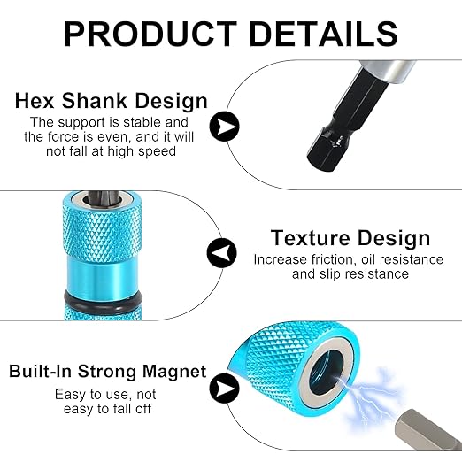 Regulowalny i wymienny - Głębokość tego magnetycznego uchwytu do bitów jest regulowana, co zapewnia prostotę i stabilność śruby. Końcówka jest wystarczająco magnetyczna, aby utrzymać śrubę na określonej głębokości, co umożliwia precyzyjne zastosowanie śrub.