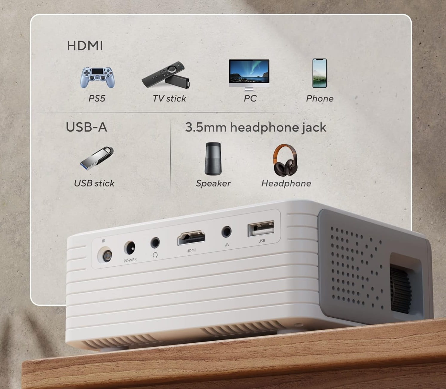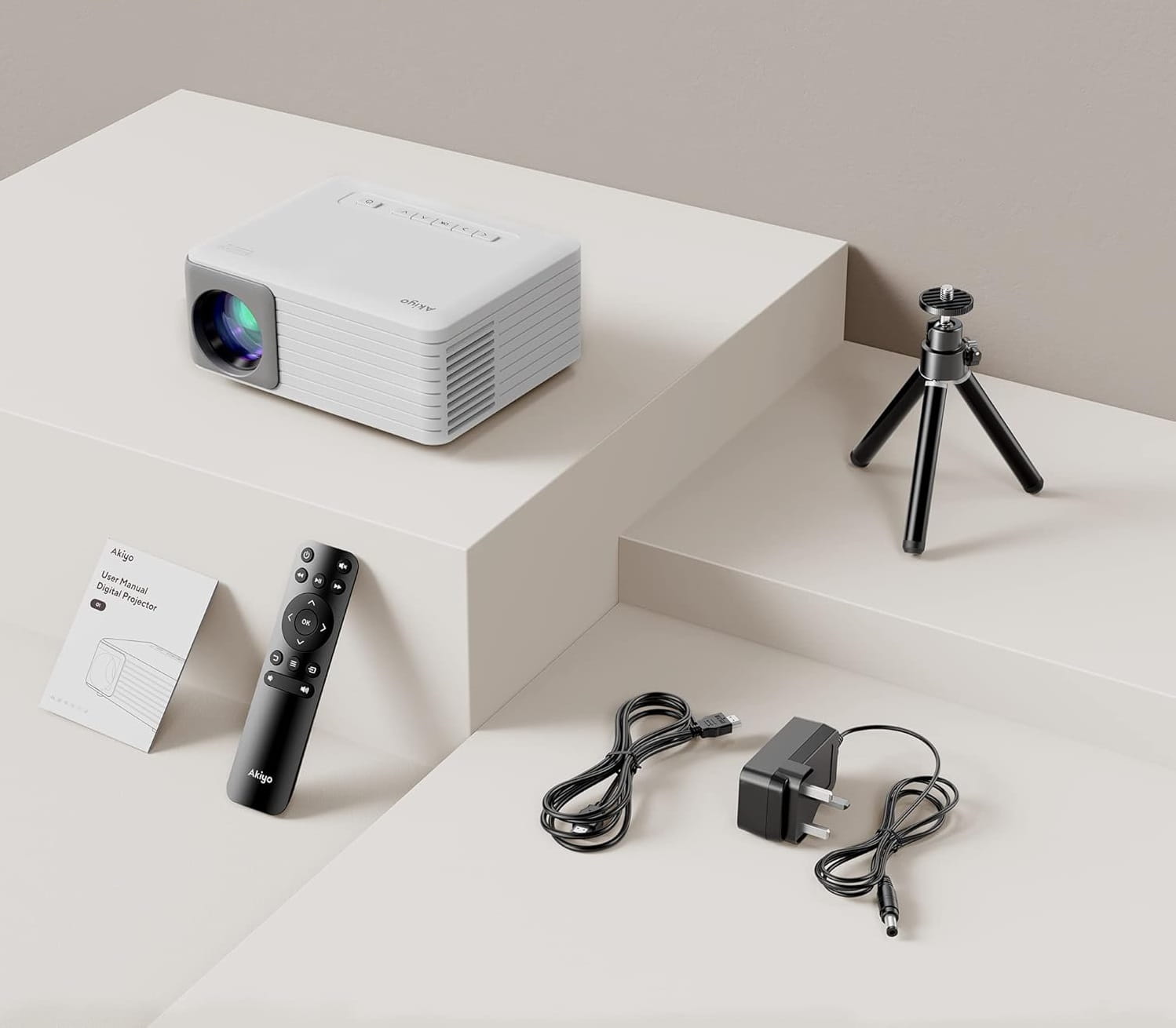 Szukasz kompaktowego projektora do bajek, filmów czy podróży? Mini Projektor AKIYO O1 to idealny wybór! Lekki jak puszka coli, zmieści się w każdej torbie, a jednocześnie zapewnia wyraźny obraz w rozdzielczości HD i ekran nawet do 142 cali.