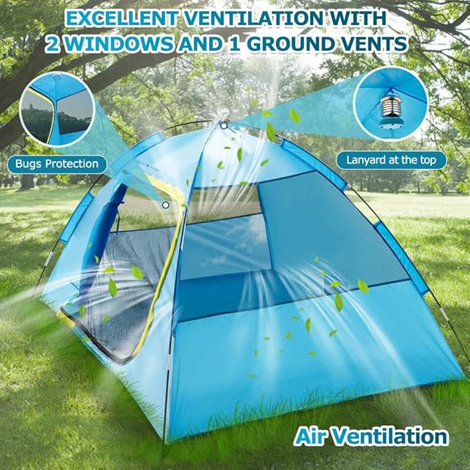 - Wentylacja: Drzwi w kształcie litery D oraz otwory wentylacyjne zapewniają doskonałą cyrkulację powietrza, co sprawia, że namiot jest przewiewny i komfortowy.