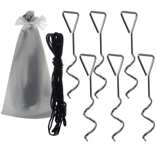 W zestawie: śledzie, sznurki, pokrowiec i etui na śledzie — wszystko, czego potrzebujesz. -
