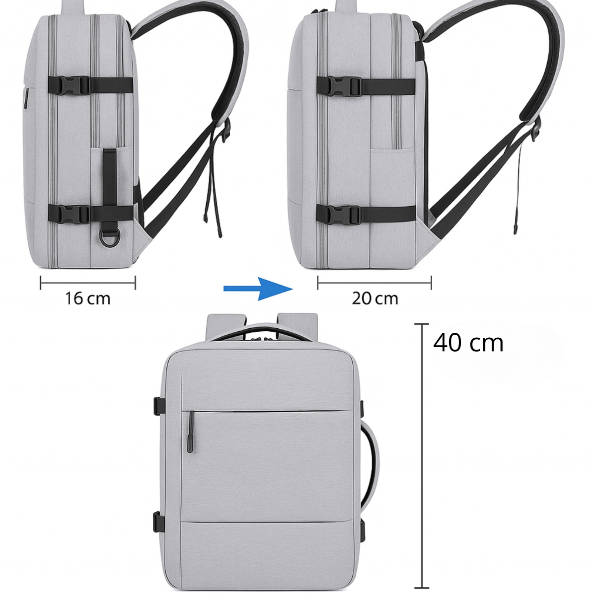 Nasz wyjątkowy plecak podróżny, stworzony z myślą o wygodzie i praktyczności podczas podróży samolotem i nie tylko. Zaprojektowany z dbałością o każdy szczegół, ten plecak zapewnia nie tylko stylowy wygląd, ale także szereg funkcji ułatwiających podróżowanie – takich jak port USB z wewnętrznym kablem do podłączenia power banka czy praktyczny worek na buty, który zabezpiecza resztę bagażu przed zabrudzeniem.