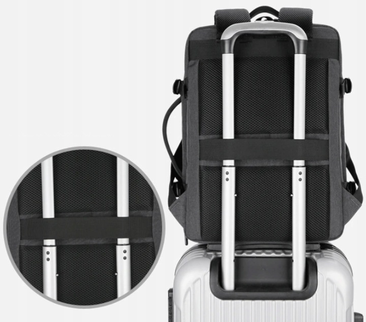 Ten plecak może być noszony na plecach w tradycyjny sposób, jako elegancka torba przymocowana za pomocą bocznego uchwytu, lub przypięty do rączki walizki podróżnej, dzięki specjalnym zaczepom. To idealne rozwiązanie na każdą podróż, niezależnie od okoliczności.
