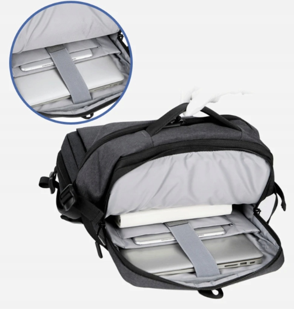 Ten multifunkcyjny plecak może być używany na trzy różne sposoby: jako klasyczny plecak, noszony za boczny uchwyt jak torba, lub przymocowany do rączki od walizki podróżnej – dzięki czemu podróżowanie staje się jeszcze łatwiejsze i bardziej komfortowe.