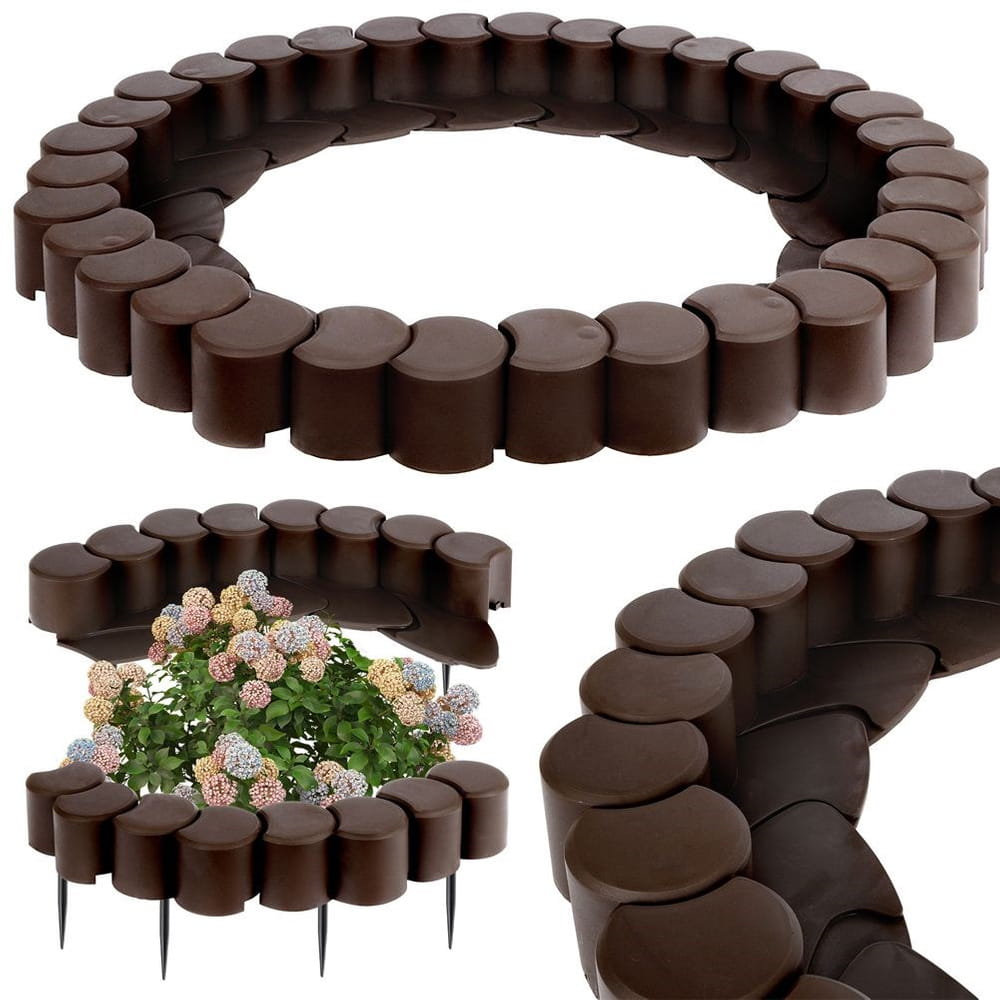 ✅ OZDOBNY - Zestaw obrzeży ogrodowych w brązowym kolorze. Będzie wyjątkowym obrzeżem dla roślin w ogrodzie. Można układać z niej różne kształty.