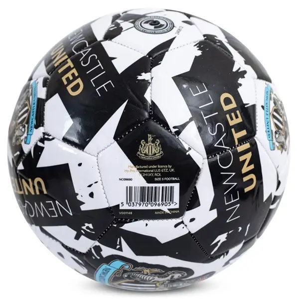 Oficjalnie licencjonowana piłka nożna Newcastle United to propozycja dla wszystkich fanów, którzy chcą zabrać klubowe barwy na boisko lub do ogrodu. Piłka wyróżnia się dynamicznym wzorem graffiti w czerni i bieli, podkreślającym charakter drużyny i jej rozpoznawalne barwy. Model w rozmiarze 5 został wykonany z wysokiej jakości materiałów syntetycznych, co przekłada się na trwałość i dobrą wytrzymałość podczas gry. Nadruk herbu Newcastle United nadaje piłce klubowego stylu, a wysoka jakość wykonania sprawia, że świetnie sprawdzi się jako prezent dla każdego kibica.