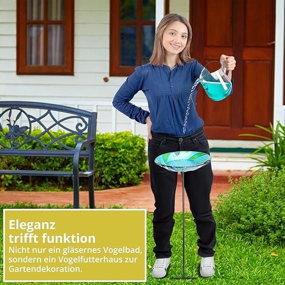 Wykonane z wytrzymałego szkła, nasze poidło jest odporne na warunki atmosferyczne, co sprawia, że zachowa swoje walory estetyczne na lata. Stylowy design doskonale współgra z każdą aranżacją ogrodu, stanowiąc zarówno element dekoracyjny, jak i funkcjonalną miskę na wodę dla ptaków.