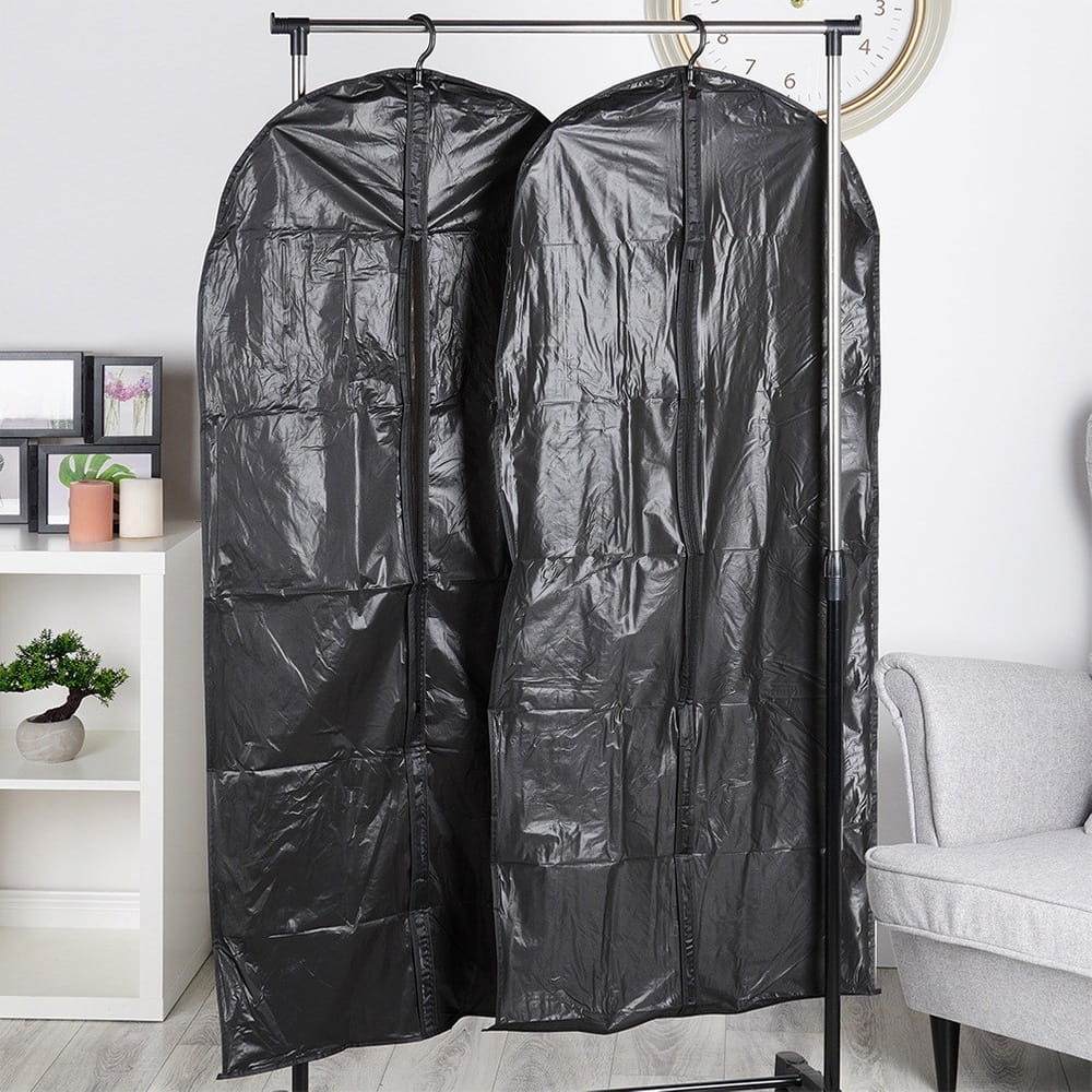 Zestaw dwóch uniwersalnych pokrowców na ubrania. Odpowiednio przechowywane ubrania mogą posłużyć nam przez długi czas. Pokrowce na ubrania, zaprojektowane z myślą o przechowywaniu garniturów, płaszczy, długich sukienek i innych ubrań. Pokrowiec sprawi, że ubranie nie pogniecie się, a jednocześnie zabezpieczy je przed kurzem czy wilgocią. Oryginalny produkt holenderskiej marki Storage Solutions. Wyprodukowano zgodnie z europejskimi standardami.
