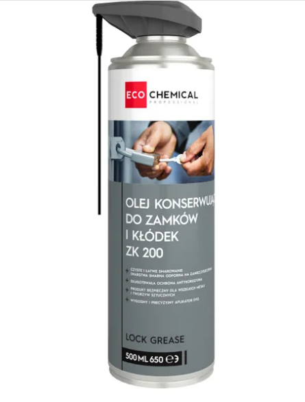 Eliminuje piski i ułatwia płynne działanie zamków.