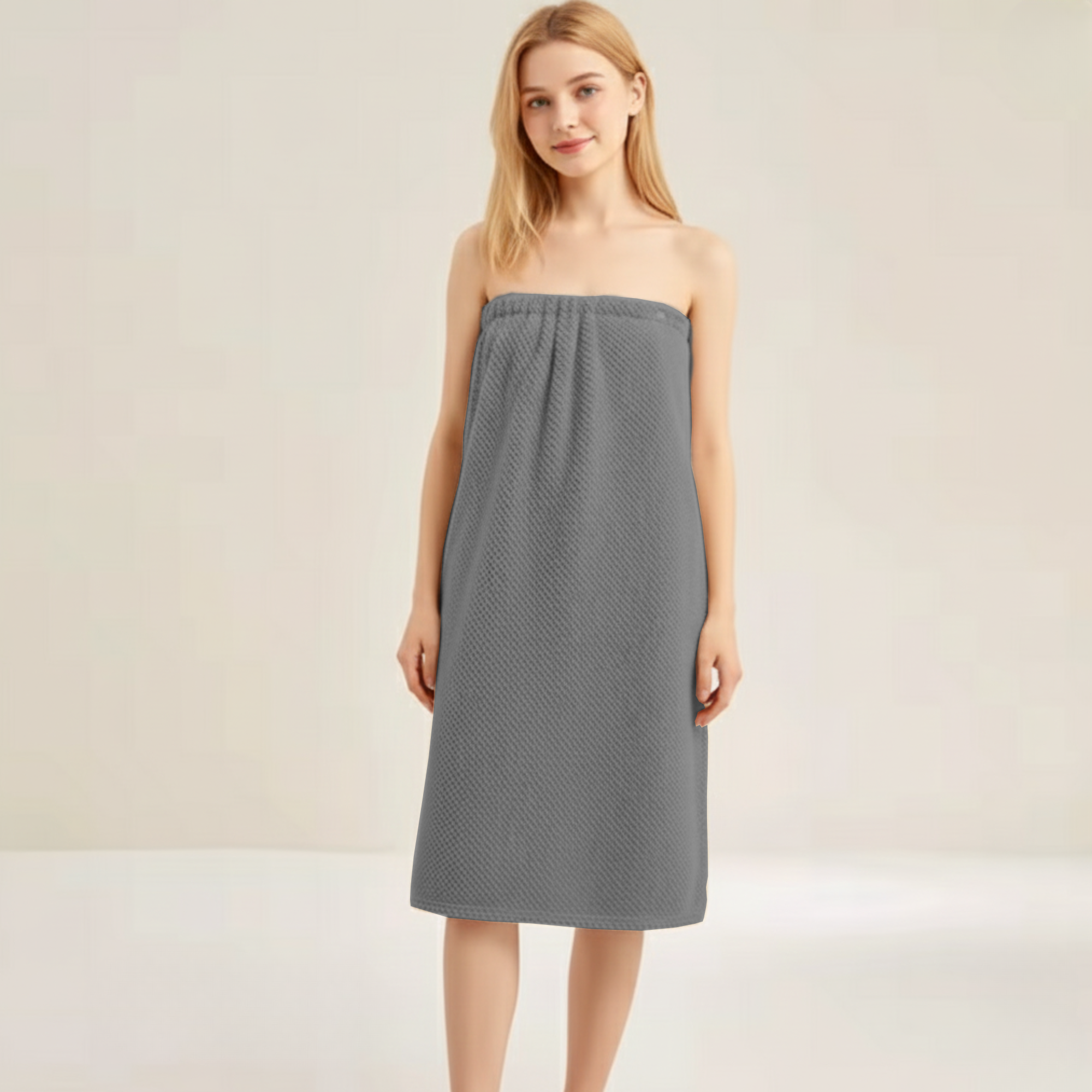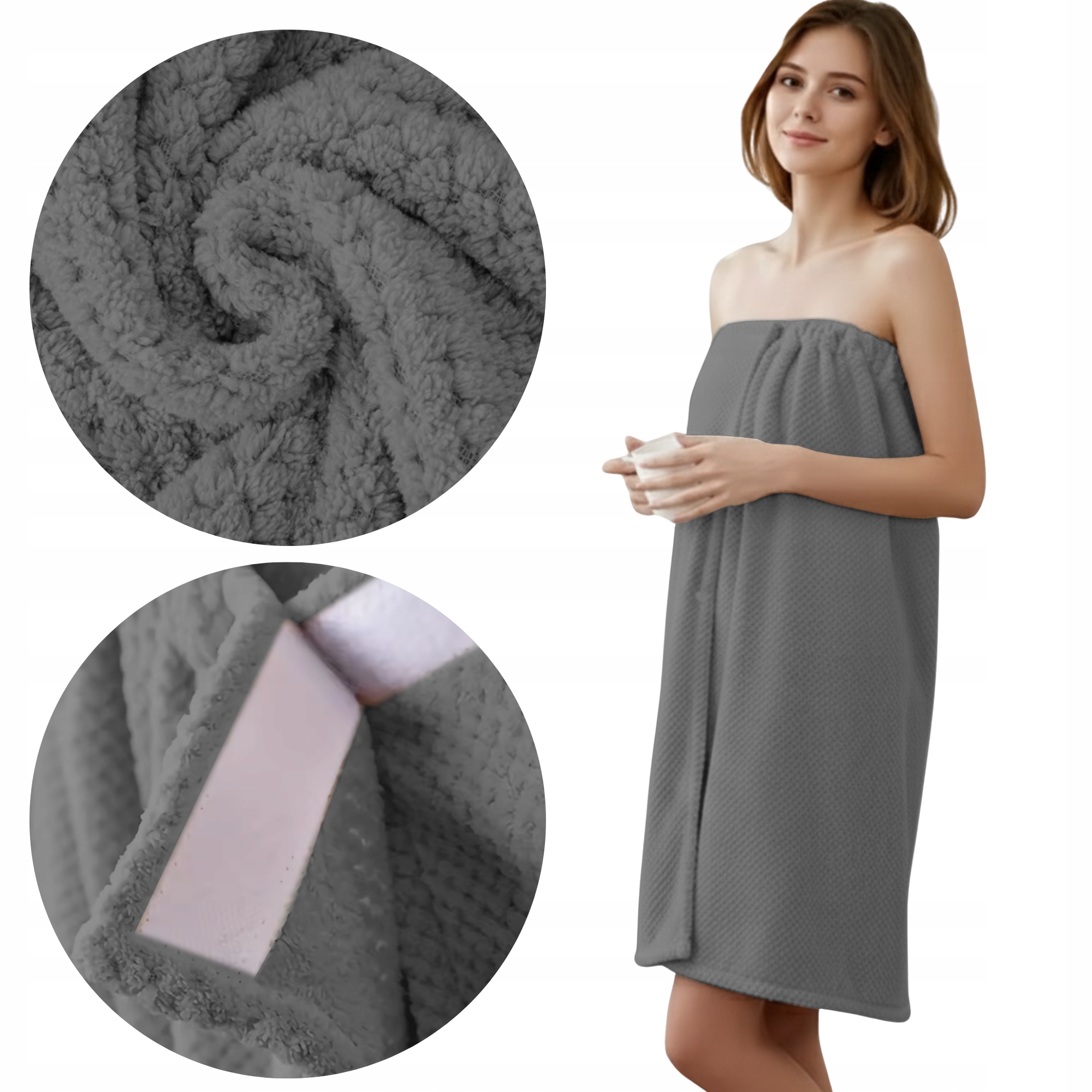 ☑️Ręcznik został wyposażony w praktyczne zapięcie na rzep oraz guzik, które umożliwia szybkie i łatwe zakładanie. Dodatkowa elastyczna gumka sprawia, że ręcznik dobrze trzyma się na ciele i nie zsuwa się podczas użytkowania. Takie rozwiązanie zapewnia swobodę ruchów i poczucie komfortu. Możesz bez obaw wykonywać codzienne czynności po kąpieli. Zapięcie pozwala dopasować ręcznik do różnych sylwetek. To funkcjonalność, którą docenisz od pierwszego użycia.