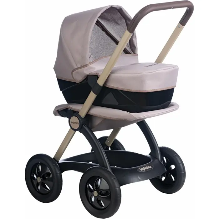 Stylowy, wielofunkcyjny wózek Inglesina zachwyci każdą małą opiekunkę. Model inspirowany prawdziwymi wózkami dziecięcymi łączy w sobie funkcje gondoli, spacerówki i wózka głębokiego, dając mnóstwo możliwości zabawy w dom, spacery czy opiekę nad lalką. Wózek przeznaczony jest dla lalek o wysokości do 42 cm. Posiada dużą, stabilną konstrukcję na czterech kółkach, a koszyk na dole idealnie sprawdzi się do przewożenia akcesoriów i ulubionych drobiazgów. Rączka znajduje się na wysokości 71 cm, co pozwala dziecku wygodnie prowadzić wózek zarówno w domu, jak i na zewnątrz. Model wyróżnia się eleganckim wykończeniem i stonowaną kolorystyką. Dzięki metalowemu stelażowi, plastikowym kołom i tkaninowej budce wygląda bardzo realistycznie, przypominając wózki z luksusowej kolekcji Inglesina. Wózek wymaga samodzielnego złożenia przez osobę dorosłą – do zestawu dołączono czytelną instrukcję obrazkową.