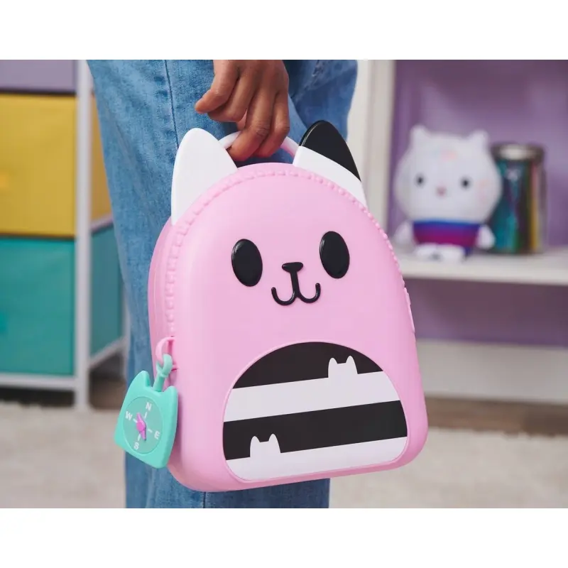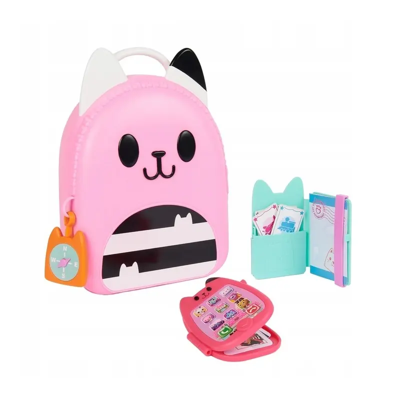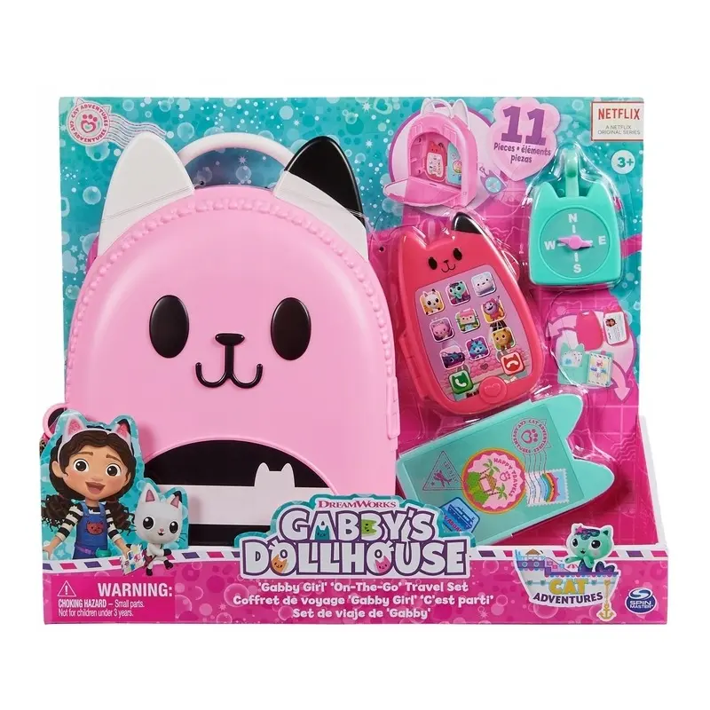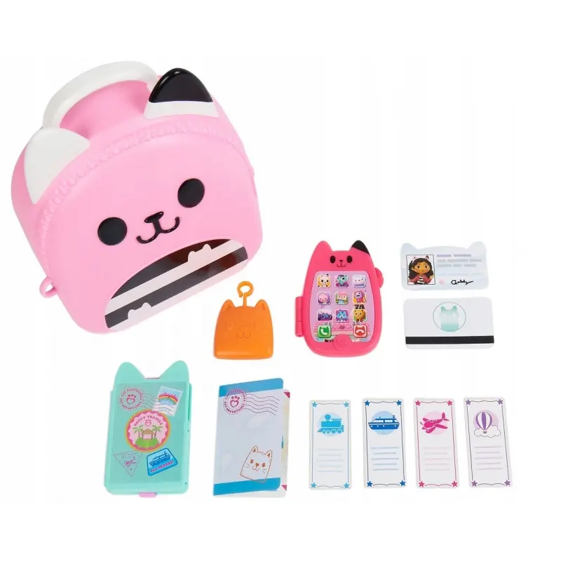 Przygotuj się na ekscytujące podróże z zestawem podróżnym prosto z Kociego domku Gabi! Ten 11-częściowy zestaw jest obowiązkowy dla fanów serii! Zawiera zabawkowy telefon komórkowy, który składa się, aby przechowywać kartę z kluczami, identyfikator Gabi, zawieszkę z kompasem, portfel podróżny do przechowywania zabawkowego paszportu i biletów podróżnych oraz uroczy pojemnik na zabawki w kształcie kotka do przechowywania wszystkich dziecięcych skarbów. Każdy element zestawu jest odwzorowany z zachowaniem detali, dzięki czemu wygląda dokładnie tak, jak przedmioty Gabi w serialu.