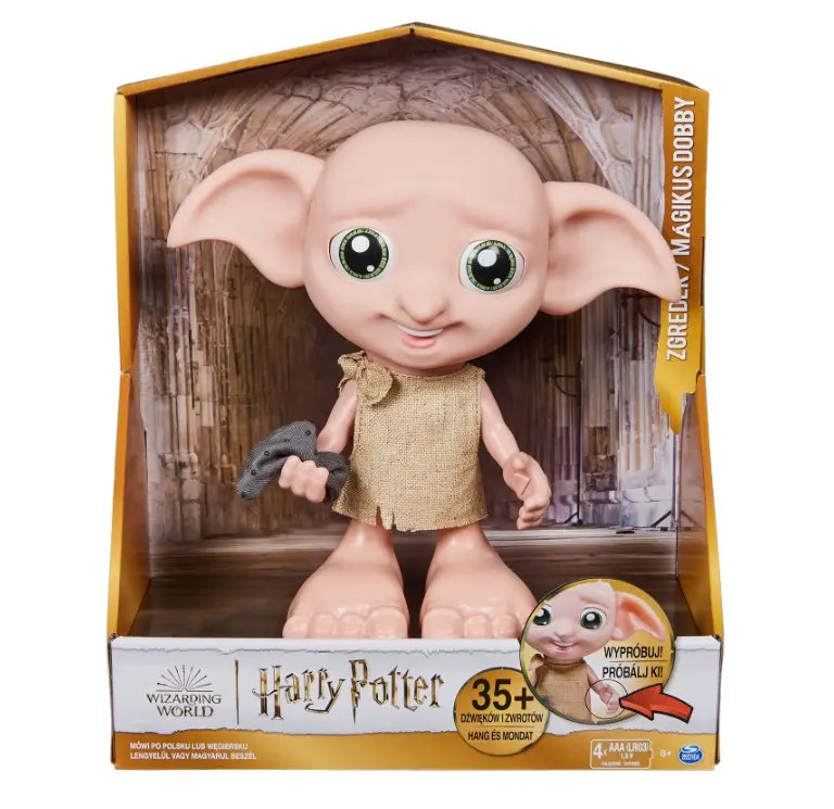 Przedstawiamy Zgredka, interaktywnego skrzata domowego z filmu o Harrym Potterze! Ta urocza figurka posiada 35 unikalnych dźwięków i zwrotów. Uwolnij Zgredka dając mu skarpetkę, a usłyszysz zdania prosto z filmu! Dzieci w każdym wieku mogą mieć niekończącą się zabawę, ożywiając Zgredka, kiedy tylko zechcą. Dzięki niewiarygodnie przyjaznej osobowości dzieci pokochają słuchanie wszystkich zabawnych rzeczy, które mówi Zgredek. Jeśli więc twoje dzieci szukają zabawkowego przyjaciela z dodatkową odrobiną uroku, już dziś zdobądź swojego własnego Zgredka - twoje dzieci będą ci za to wdzięczne! Idealny prezent dla wszystkich fanów magii i uniwersum Harrego Pottera!