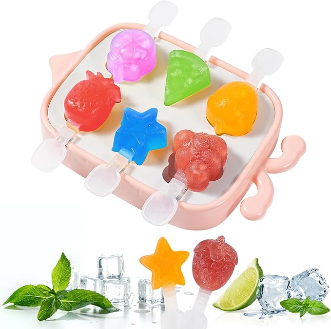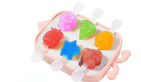 Jedyne w swoim rodzaju wzornictwo: Foremki mają wyjątkowy design – kształt lodów inspirowany jest motywem pszczoły, co nadaje im dziecięcego uroku. Wnętrze foremek przedstawia 6 różnych owoców: truskawkę, ananasa, karambolę, pomarańczę, arbuza i winogrona, co czyni je idealnymi dla dzieci.