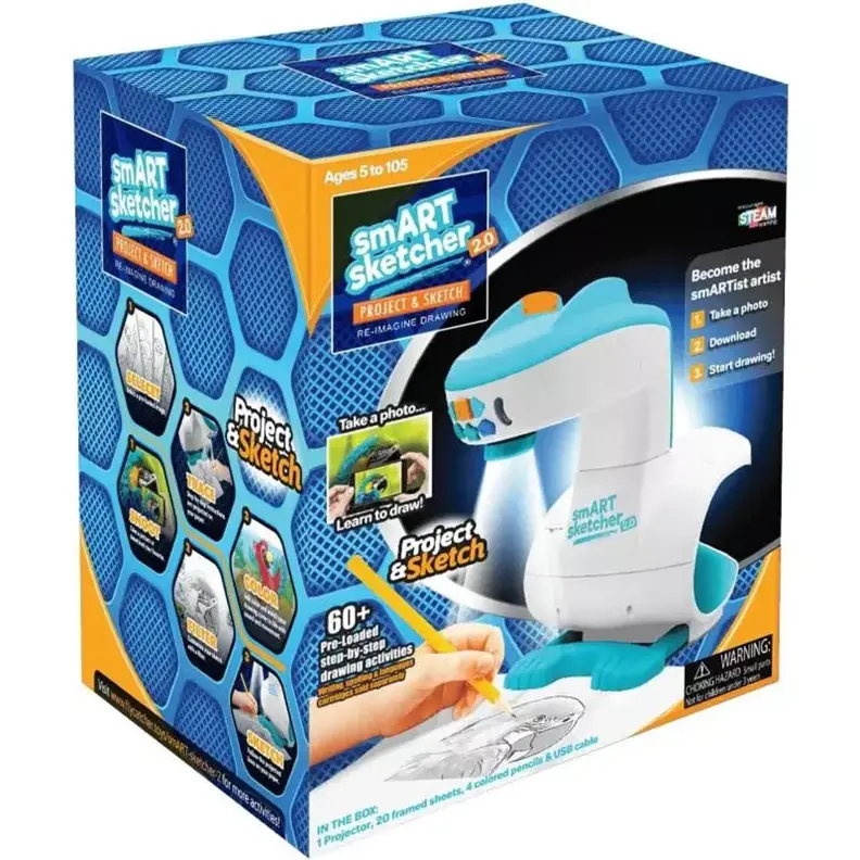 Smart Sketcher 2.0 to nowoczesny, interaktywny projektor, który w kreatywny i przyjazny sposób wspiera dzieci w nauce rysunku. To idealne rozwiązanie dla młodych artystów, którzy chcą rozwijać swoje umiejętności i tworzyć wyjątkowe prace krok po kroku. Urządzenie wyświetla na kartce papieru kontury obrazków, które dziecko może odrysować i pokolorować według własnej wyobraźni. Dzięki temu najmłodsi uczą się rysować po śladzie, poznają podstawy kompozycji i rozwijają wyobraźnię przestrzenną. Projektor można połączyć z aplikacją mobilną, aby wgrać własne zdjęcia i zamienić je w szkice do narysowania. Smart Sketcher 2.0 oferuje ponad 60 gotowych ilustracji oraz dodatkowe efekty dźwiękowe, które sprawiają, że nauka rysowania staje się jeszcze ciekawsza. To również świetne narzędzie edukacyjne – pomaga w nauce języka angielskiego poprzez interaktywne komunikaty i nazwy przedstawianych obiektów. Projektor wykonany został z trwałych i bezpiecznych materiałów, zgodnych z europejskimi standardami. Dzięki wbudowanej pamięci oraz łatwej obsłudze, zabawka sprawdzi się zarówno w domu, jak i w edukacji przedszkolnej czy szkolnej. Zawartość zestawu: - projektor Smart Sketcher 2.0 - 60+ wgranych ilustracji krok po kroku - 20 kartek do rysowania w ramkach - 4 kolorowe kredki - kabel USB.