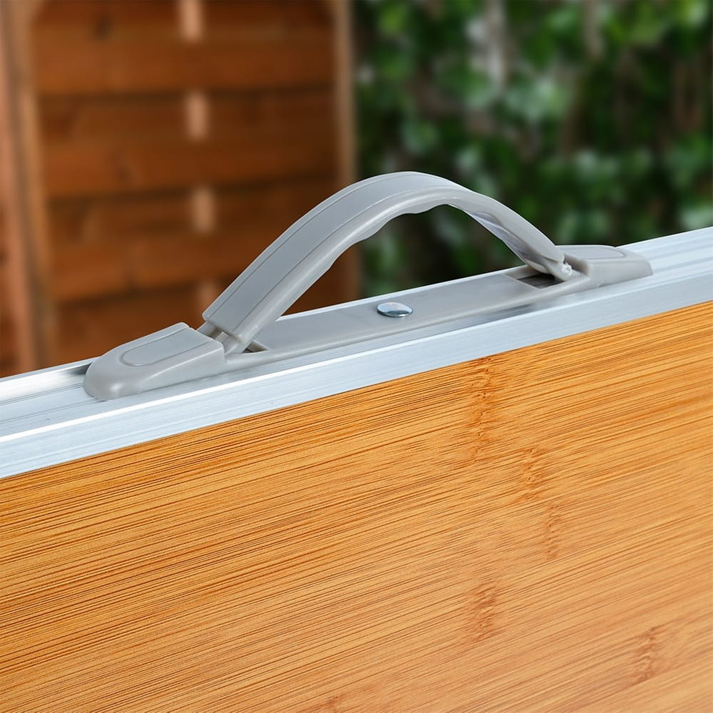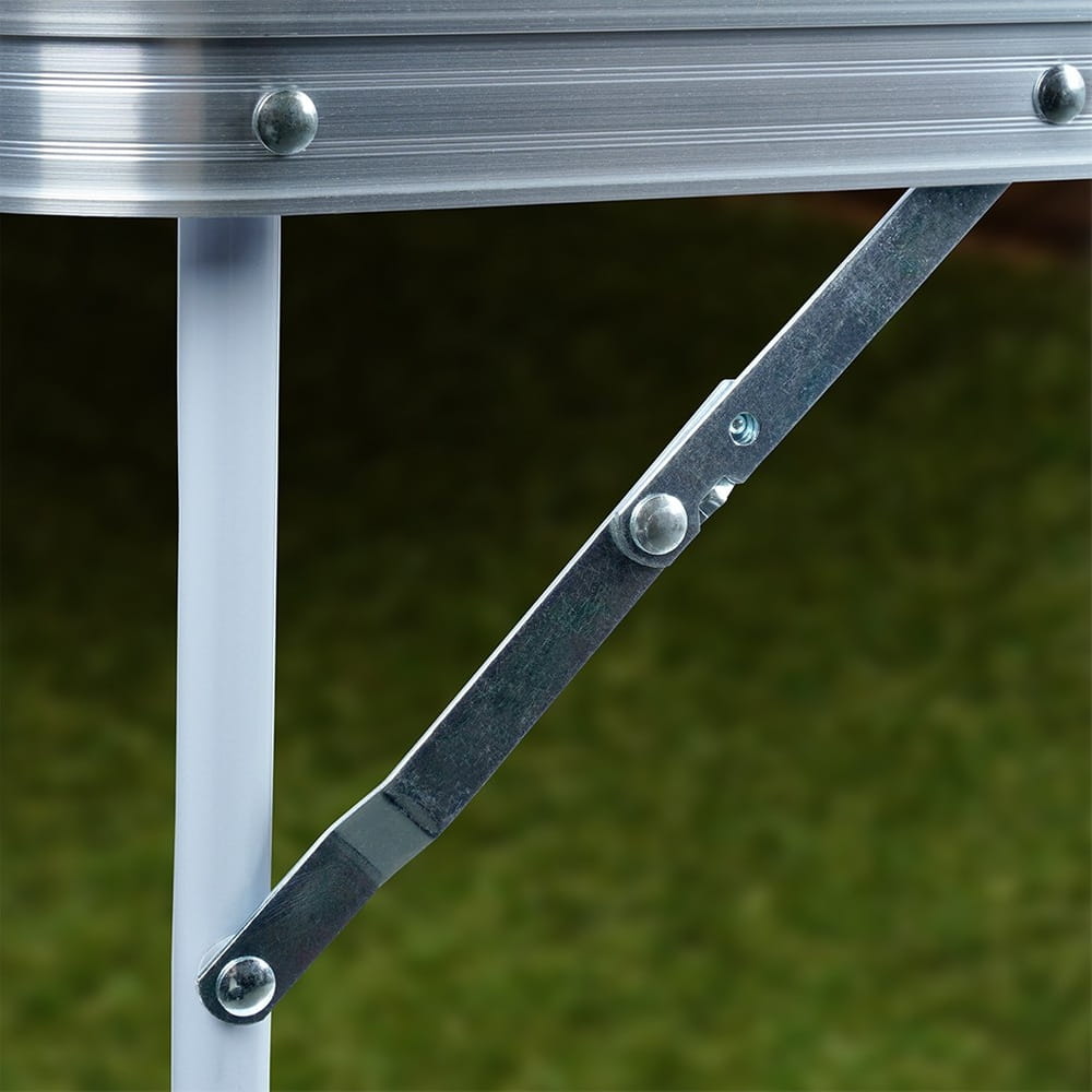 Składany stolik turystyczny. Idealny podczas wypadów za miasto, możemy zabrać go ze sobą na kemping lub pod namiot. Stolik sprawdzi się również w ogrodzie. Utrzymany w modnej kolorystyce. Konstrukcja stolika zapewni jego stabilność. Po złożeniu zajmuje mało miejsca, dzięki czemu będzie wygodny w przechowywaniu, a także w transporcie. Po złożeniu stolik ma kształt płaskiego prostokąta, a uchwyt zapewni wygodne przenoszenie. Oryginalny produkt marki Vilde. Wyprodukowano zgodnie z europejskimi standardami.