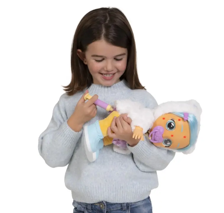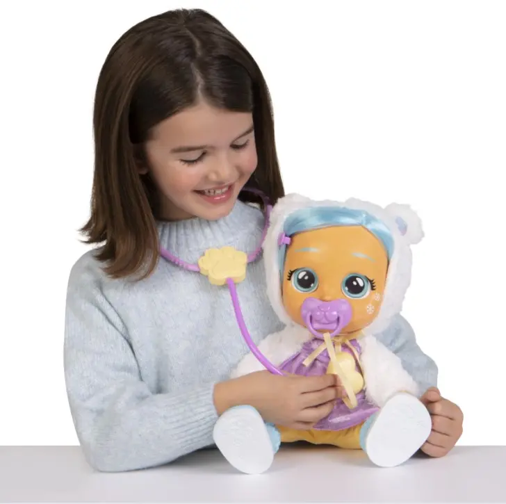 Poznaj laleczkę Cry Babies Kristal, teraz w eleganckim stroju! Kristal, jak wszystkie Cry Babies, płacze prawdziwymi łzami, a bez smoczka wydaje autentyczne odgłosy płaczącego maluszka. Dodatkowo, gdy Kristal zachoruje, będzie trzeba się nią zaopiekować. Daj jej odpowiednie lekarstwo i przytul, aby poczuła się lepiej i przestała płakać. Jeśli się przeziębi, trzeba będzie podać jej lekarstwo. Jeśli płacze, jakby była chora, trzeba użyć termometru i sprawdzić, czy ma gorączkę. Może mieć też ospę wietrzną, a na jej twarzy pojawią się małe czerwone kropki, jednak znikną, gdy zrobisz jej zastrzyk! Możesz czesać jej włosy grzebieniem! Kristal potrafi wydać 30+ dźwięków. Zestaw zawiera 6 akcesoriów: smoczek, stetoskop, syrop, strzykawkę, termometr i grzebień. Kristal ma na sobie eleganckie ubranko, parę bucików i smoczek. Zestaw zawiera: 1 x laleczka 1 x ubranie 1 x pasujące buty 1 x smoczek 1 x stetoskop 1 x syrop 1 x strzykawka 1 x termometr 1 x grzebień Dla dzieci powyżej 18. miesiąca życia.