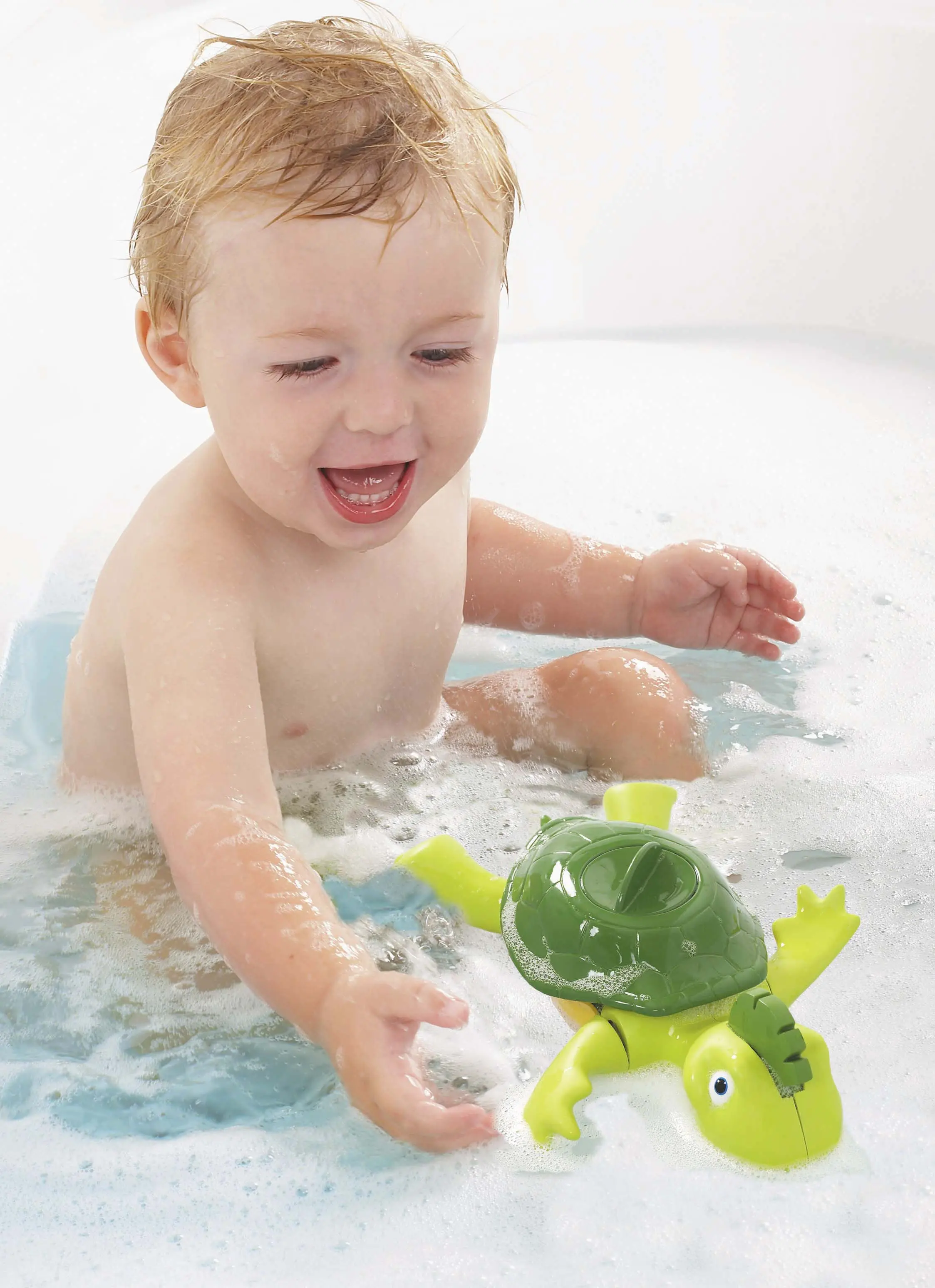 Radosna piosenkarka z pewnością umili czas w kąpieli każdemu dziecku. Czego on nie może zrobić! Wymarzony towarzysz wodnych zabaw potrafi śpiewać, bulgotać i czarująco machać płetwami. Wystarczy przekręcić przycisk na jego muszli, a żółw zacznie pływać, machając łapami. W zależności od tego, czy płynie po brzuszku czy plecach, śpiewa wesołą piosenkę lub wydaje zabawne dźwięki. Dodatkowo wywołuje bezcenny uśmiech na twarzy każdego małego amatora wodnych przygód. Zabawa w wannie już nigdy nie będzie nudna!